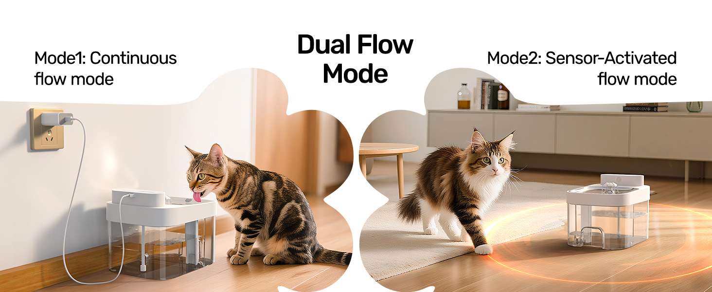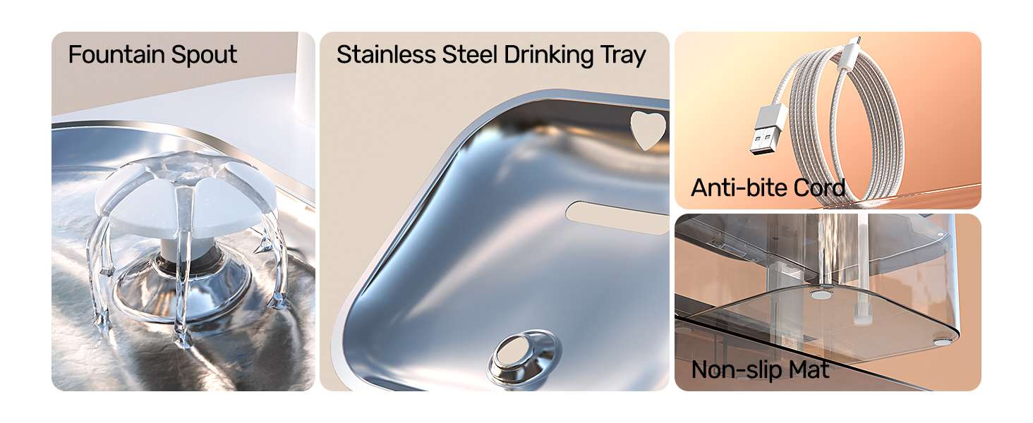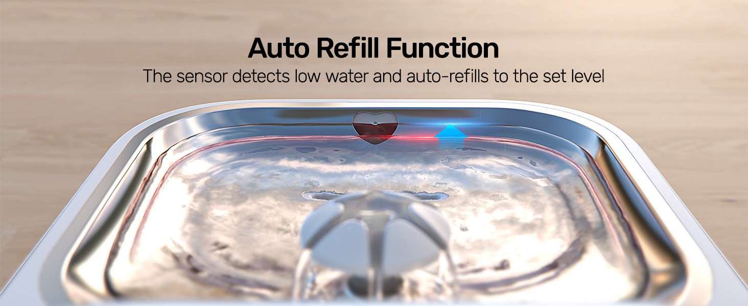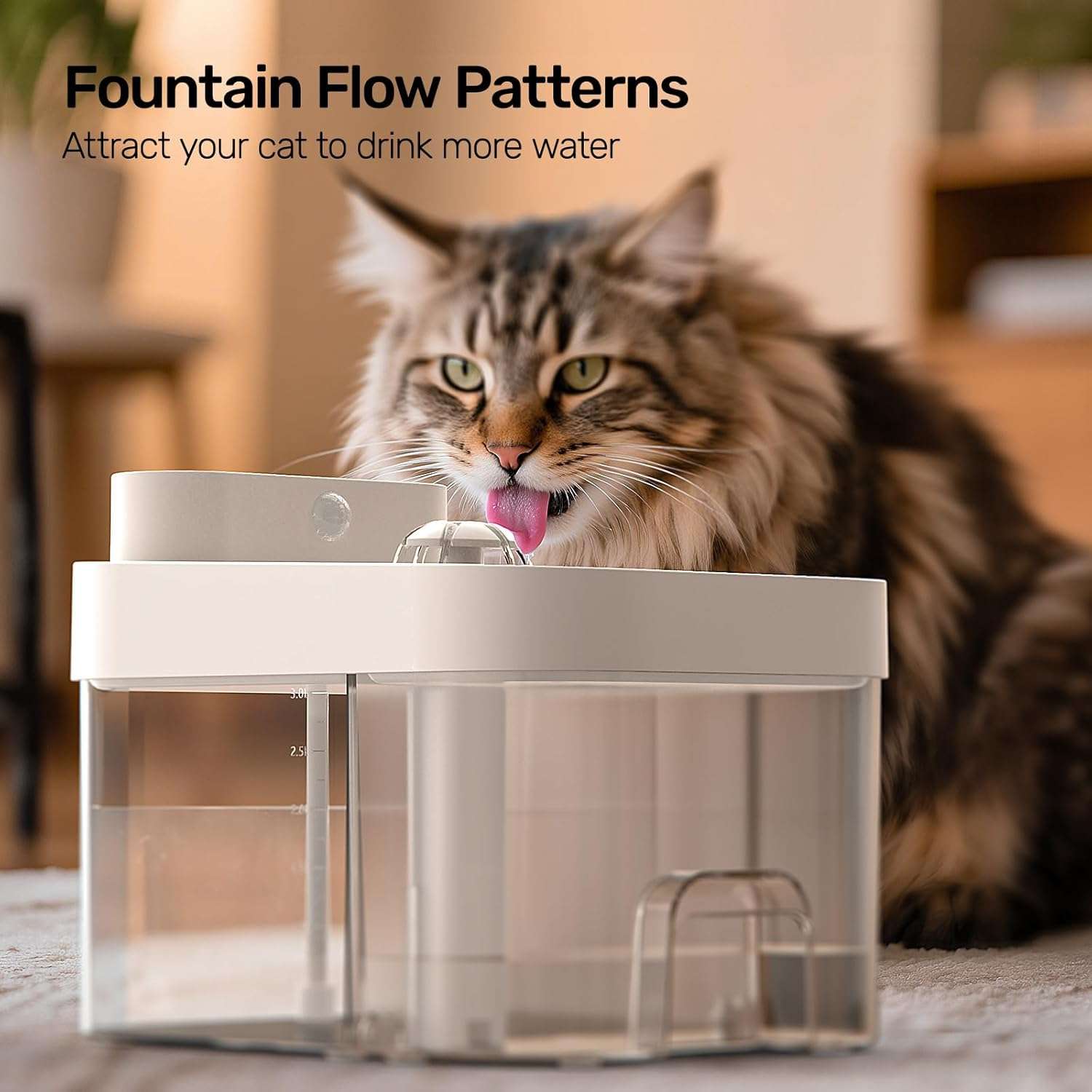 Diseñada específicamente para gatos y mascotas pequeñas (no apta para perros grandes), esta fuente opera a un nivel casi imperceptible de 20 dB (más silencioso que un susurro), ideal para dormitorios. Su bandeja de acero inoxidable es higiénica y fácil de limpiar, ofreciendo dos modos de flujo: detección inteligente por movimiento o flujo continuo (este último solo con cable).