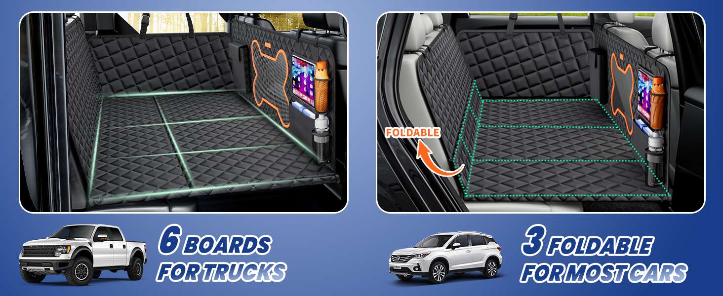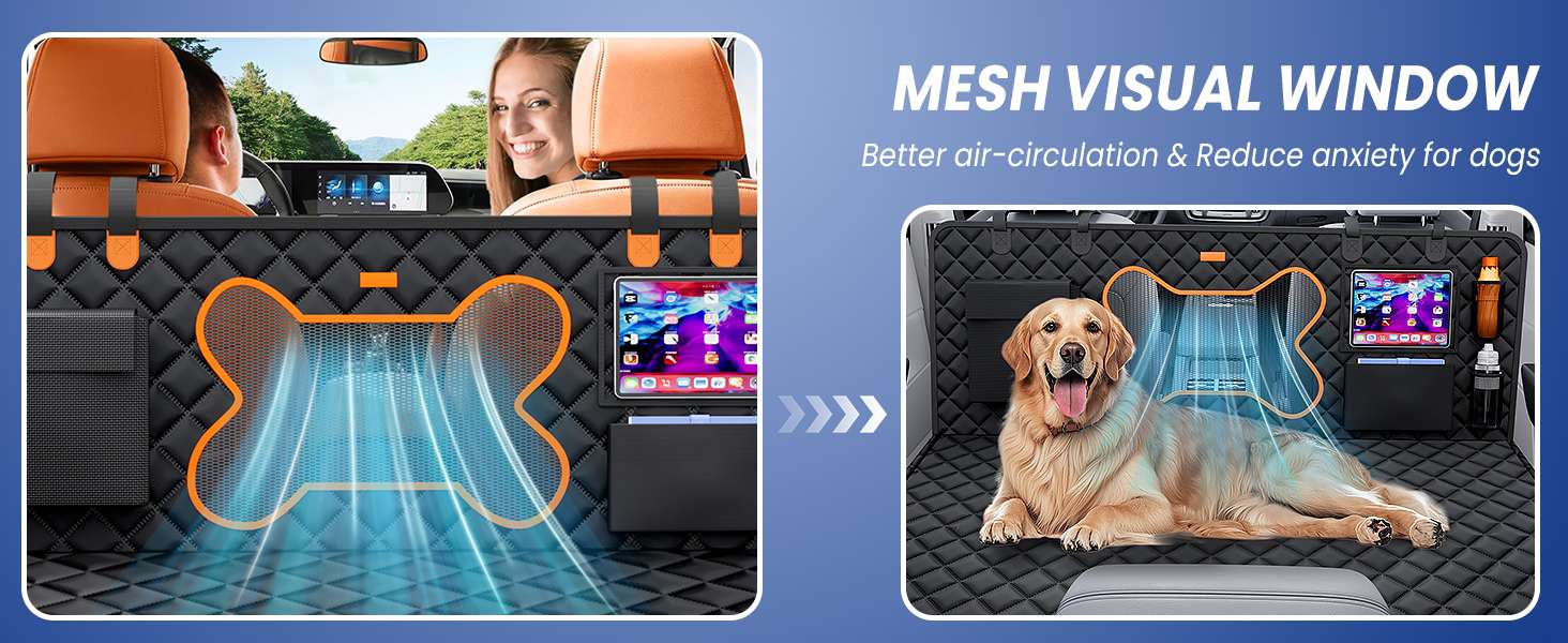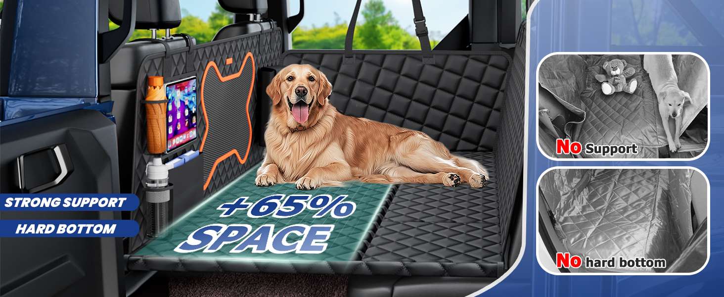 Sesenta y Cinco por Ciento Mas de Espacio No dejes que tus mascotas viajen apretadas. Al cubrir el espacio de las piernas, este extensor amplia la zona utilizable en un 65 por ciento. Crea un inmenso refugio personal donde tus perros podran jugar, estirarse y dormir relajadamente, mientras la resistente tela Oxford impermeable y anti rasgunos protege completamente los asientos y los paneles de las puertas.