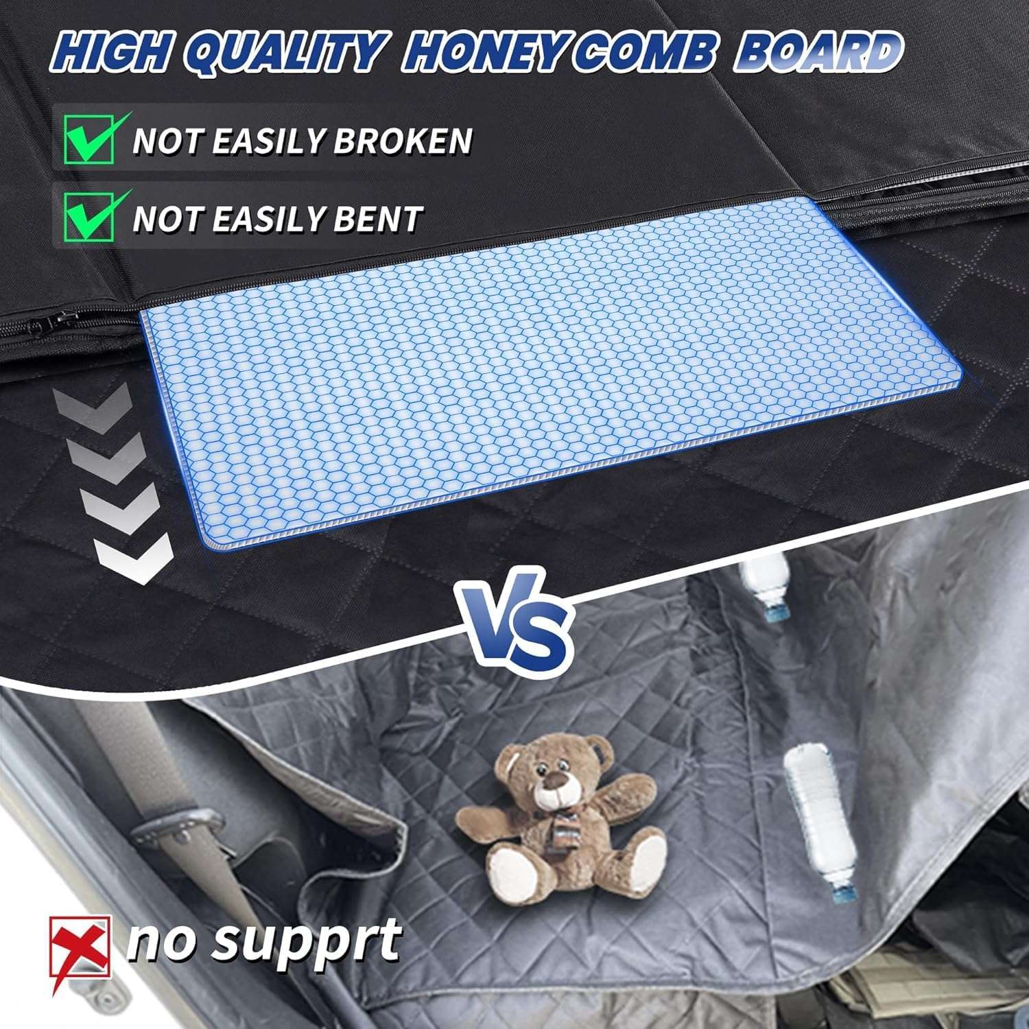 Soporte Extremo de 180 Kilos Despidete de las hamacas debiles. Su base reforzada cuenta con tres robustas tablas de soporte que aguantan hasta 180 kilos de peso absoluto. Crea una plataforma totalmente plana y firme que no se hunde, brindando un viaje seguro y muy comodo para dos o hasta cuatro perros grandes, protegiendo sus articulaciones en frenadas o curvas bruscas.