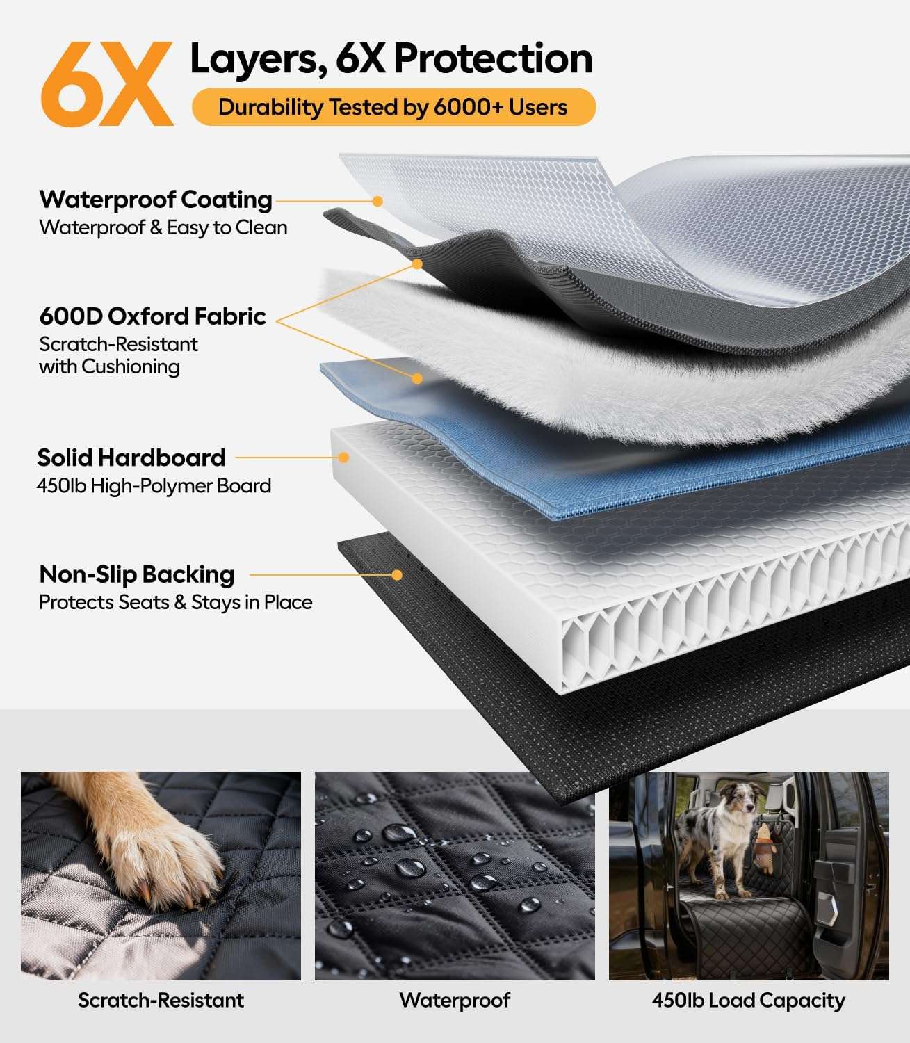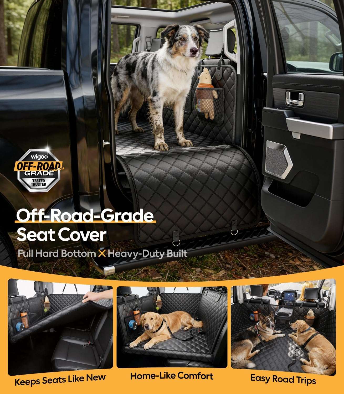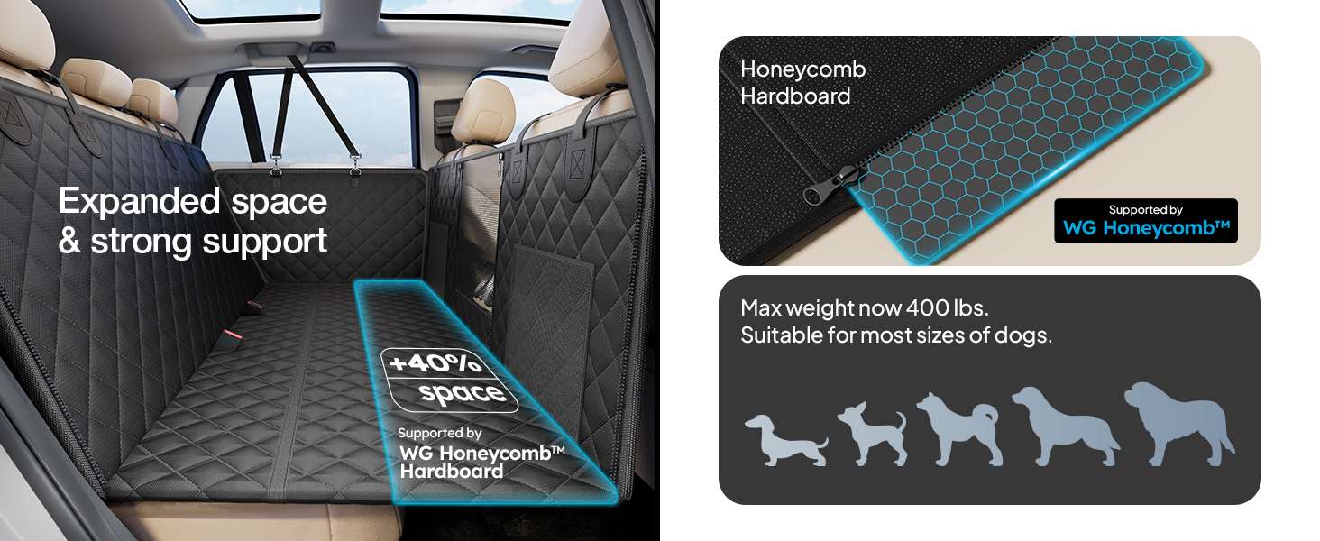 Resistencia Extrema de 204 Kilos Olvidate de las fundas que se hunden o se rompen. Su estructura cuenta con ocho paneles de fondo duro reforzados que soportan hasta 204 kilos de peso. Esta base firme crea una superficie plana sobre el espacio de las piernas, cuidando las articulaciones de tus perros al evitar que se resbalen o se caigan durante las frenadas bruscas en la ruta.