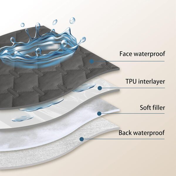 100% impermeable: esta manta para mascotas tiene un revestimiento impermeable especial en la capa exterior y una membrana impermeable de TPU en la capa interior, que puede lograr una doble protección impermeable. Puedes dejar que tu mascota se mueva en la manta a voluntad sin preocuparte de que esté húmeda o sucia.