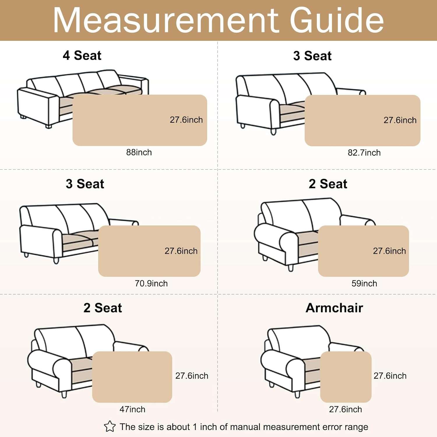 Encuentra la medida exacta para cada parte de tu sillon (Mide el largo del asiento de tu mueble antes de elegir):