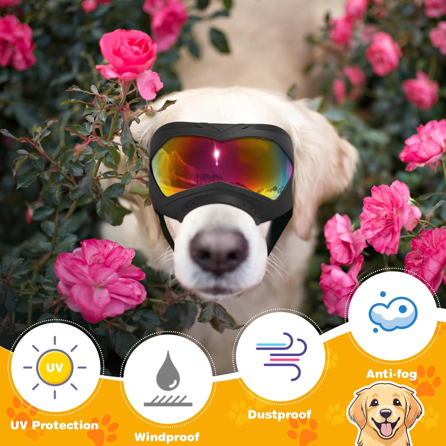 Proteccion Total en Ruta y Clima: Seguridad UV y Viento. Sus lentes brindan proteccion UV completa contra el sol dañino. Ademas, sellan los ojos contra el viento fuerte, el polvo y la niebla, permitiendo que su perro saque la cabeza por la ventana del auto o viaje en moto sin sufrir irritacion ni sequedad ocular.
