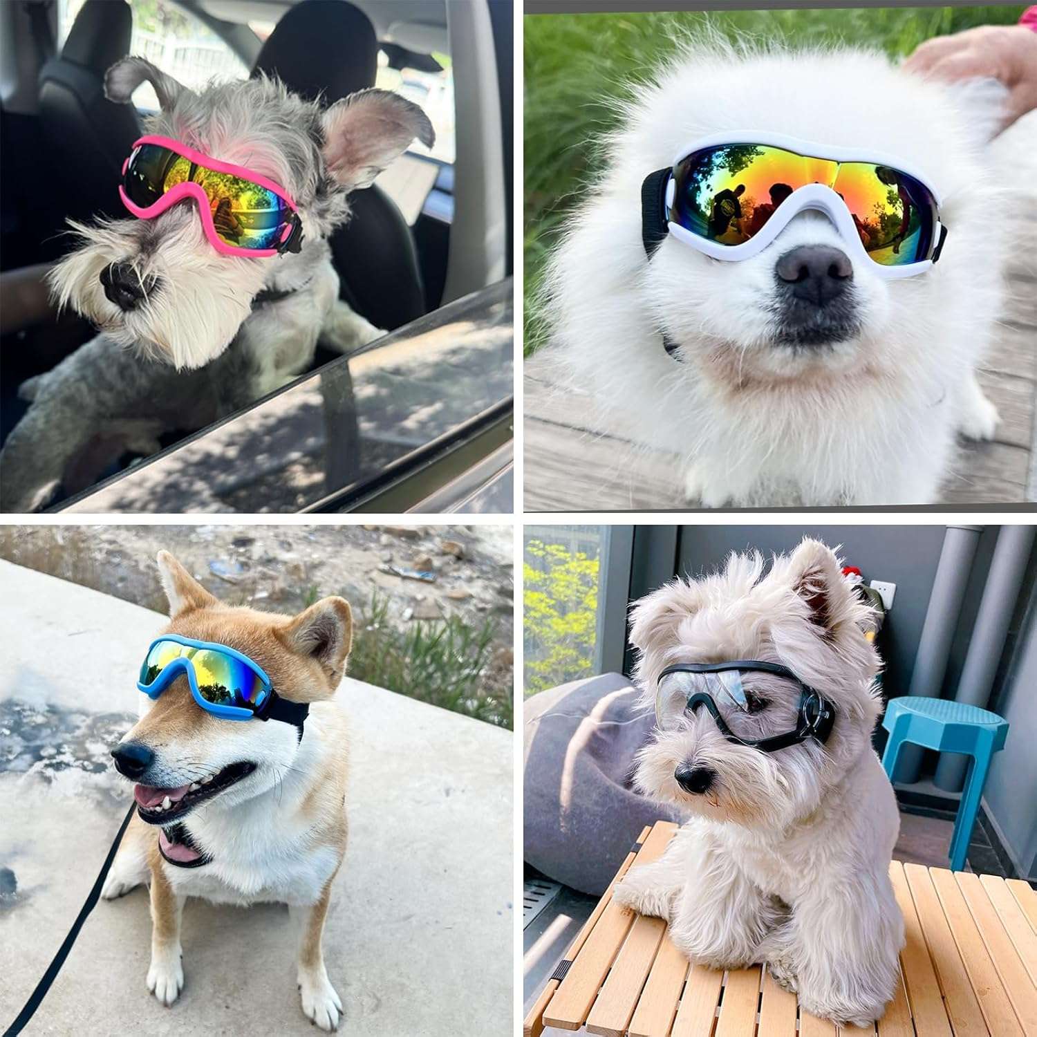 Proteccion UV y Anti-Polvo: Ojos sanos. Proteja la vista de su mascota de los rayos UV nocivos, asi como del viento, la arena y el polvo durante paseos en auto o dias de playa. Las correas elasticas ajustables aseguran que las gafas se mantengan firmes sin apretar demasiado.