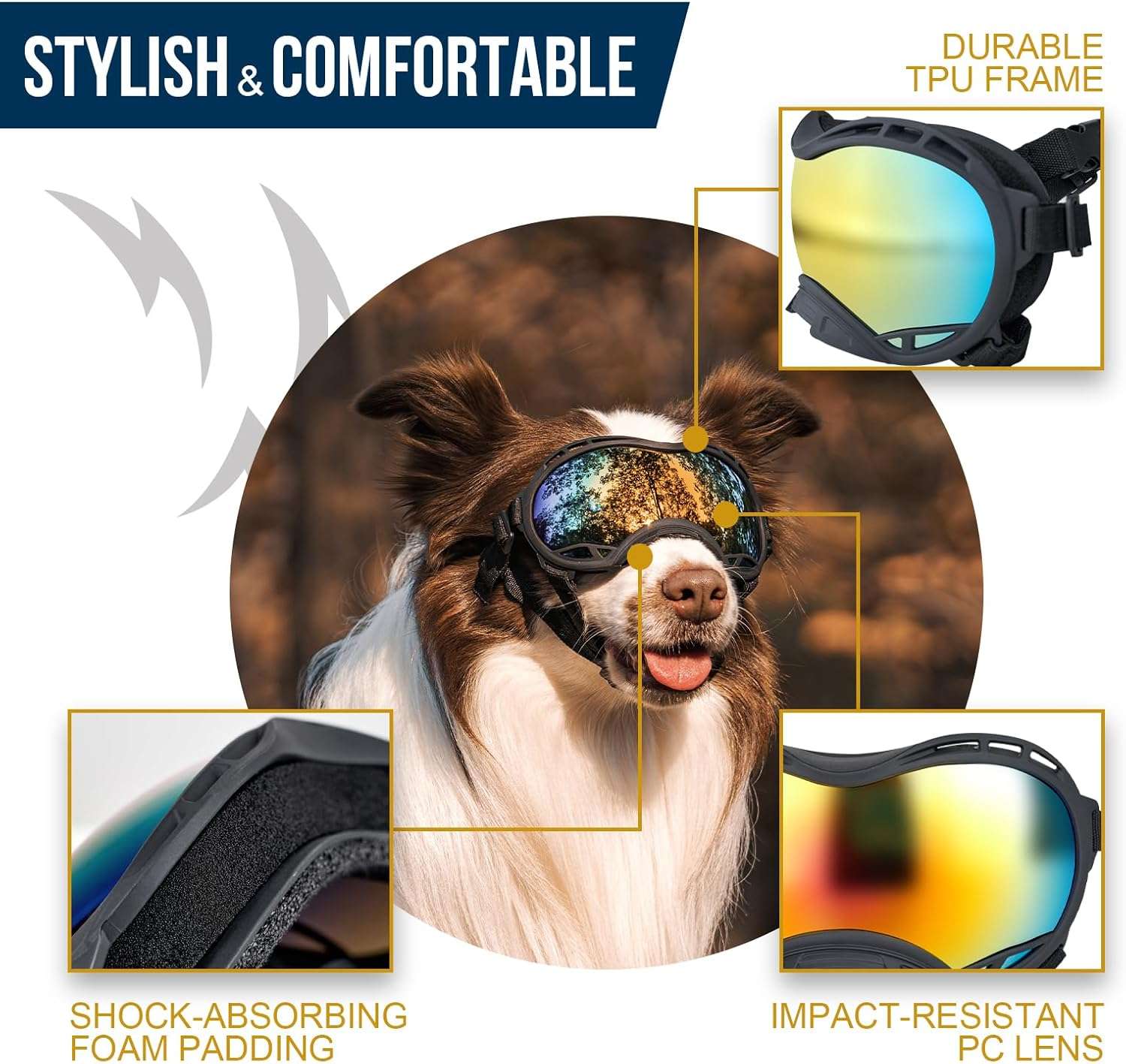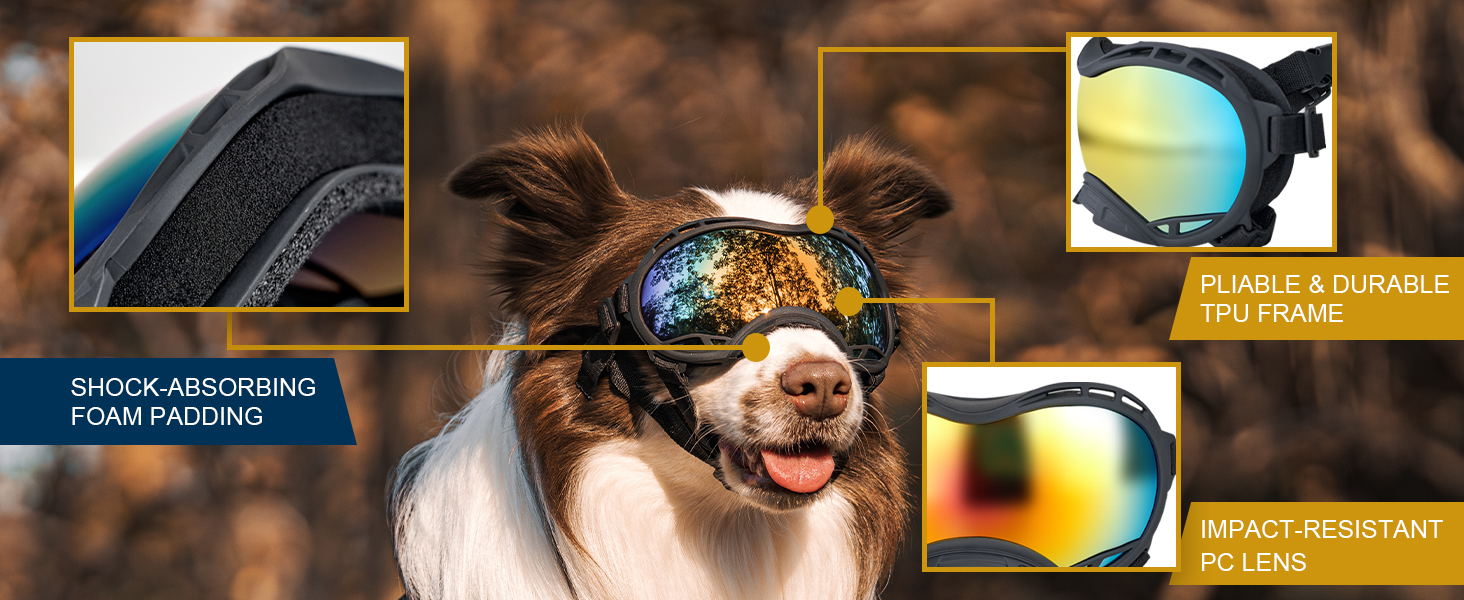 Tecnologia Antivaho y Sello Antipolvo: Claridad visual continua. Gracias a su diseño interno con acolchado de espuma, estas gafas crean un sello hermetico que impide la entrada de arena, polvo o gotas. Ademas, su tecnologia “fog-less” evita que los cristales se empañen por el calor corporal del perro, asegurando una visibilidad nitida en todo momento.