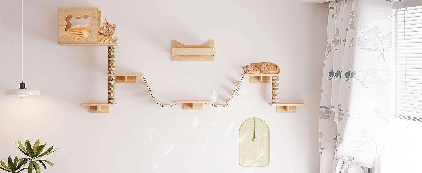 Madera de Pino de Nueva Zelanda Resistente: Construccion robusta hecha de pino solido de alta calidad. La superficie es lisa, sin rebabas, y el grosor de la madera garantiza la seguridad y durabilidad necesarias para que su amigo felino salte entre los 13 elementos con confianza.