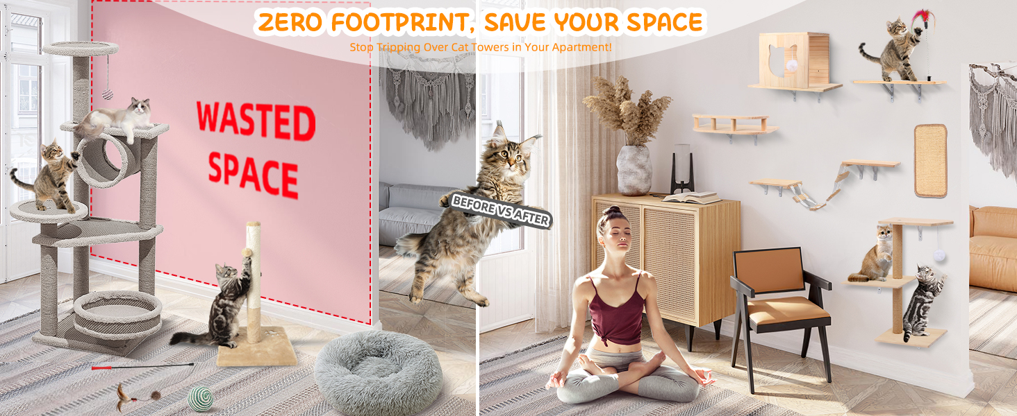 Maximo Ahorro de Espacio Vertical: Diseñado para liberar el suelo de su hogar. Al utilizar las paredes, los gatos disfrutan de puntos de vista altos que les encantan, mientras usted mantiene su piso despejado. Es la solucion perfecta para departamentos y habitaciones pequeñas que quieren evitar el desorden.