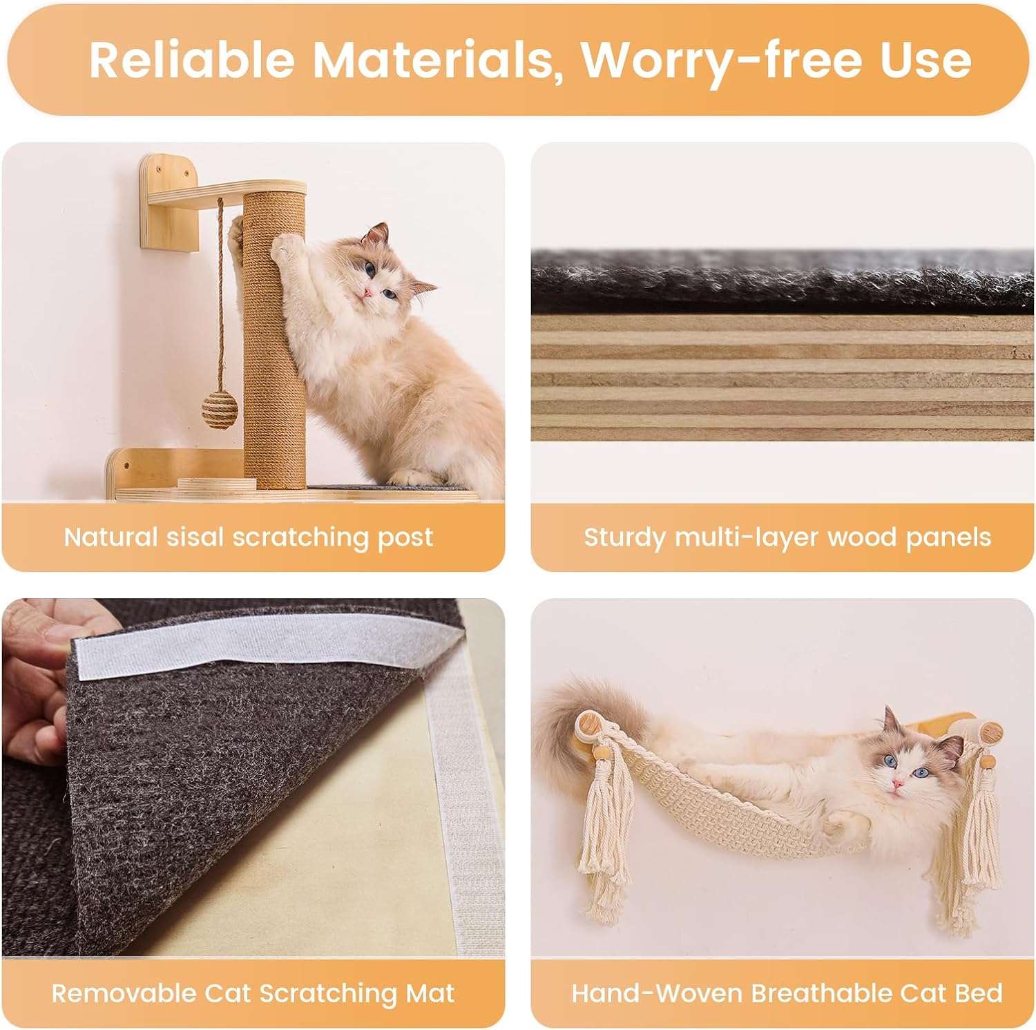 Resistencia y Seguridad Garantizada: Fabricado con paneles multicapa de madera maciza de alta densidad. Su construccion reforzada soporta hasta 23 kilos (50 libras) sin esfuerzo, lo que lo hace ideal para hogares con varios gatos o razas grandes. Incluye tela de terciopelo suave antideslizante para que sus gatos trepen de forma segura.