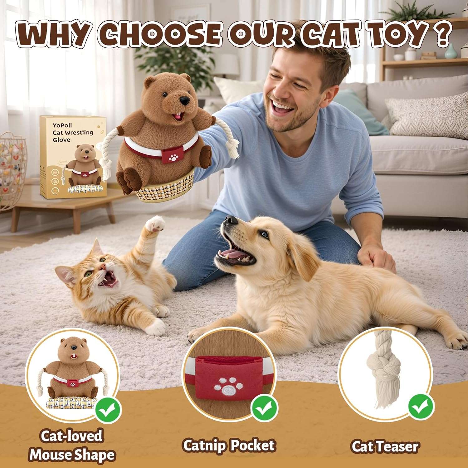 Utilizando este adorable y practico diseño de marioneta usted podra controlar los movimientos de forma sencilla para fomentar los instintos naturales de caza de su felino Esta interacción constante ayuda a crear un vinculo de confianza y diversión inigualable entre usted y su mascota estimulando su mente y manteniéndolo muy activo
