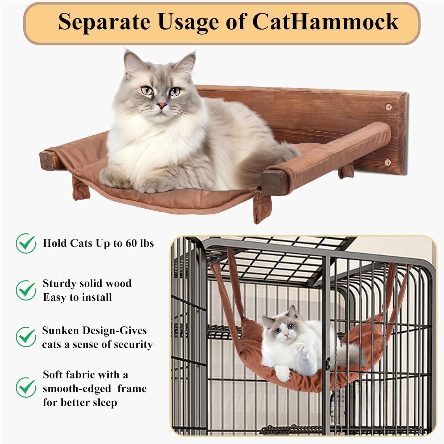 Materiales Seguros y Lavables: Hecha de madera de pino maciza diseñada para durar. Los materiales son no toxicos y seguros. La tela suave no tiene olor, no destiñe y es totalmente lavable a maquina, ofreciendo un espacio de descanso higienico y acogedor que se adapta al cuerpo de su gato.