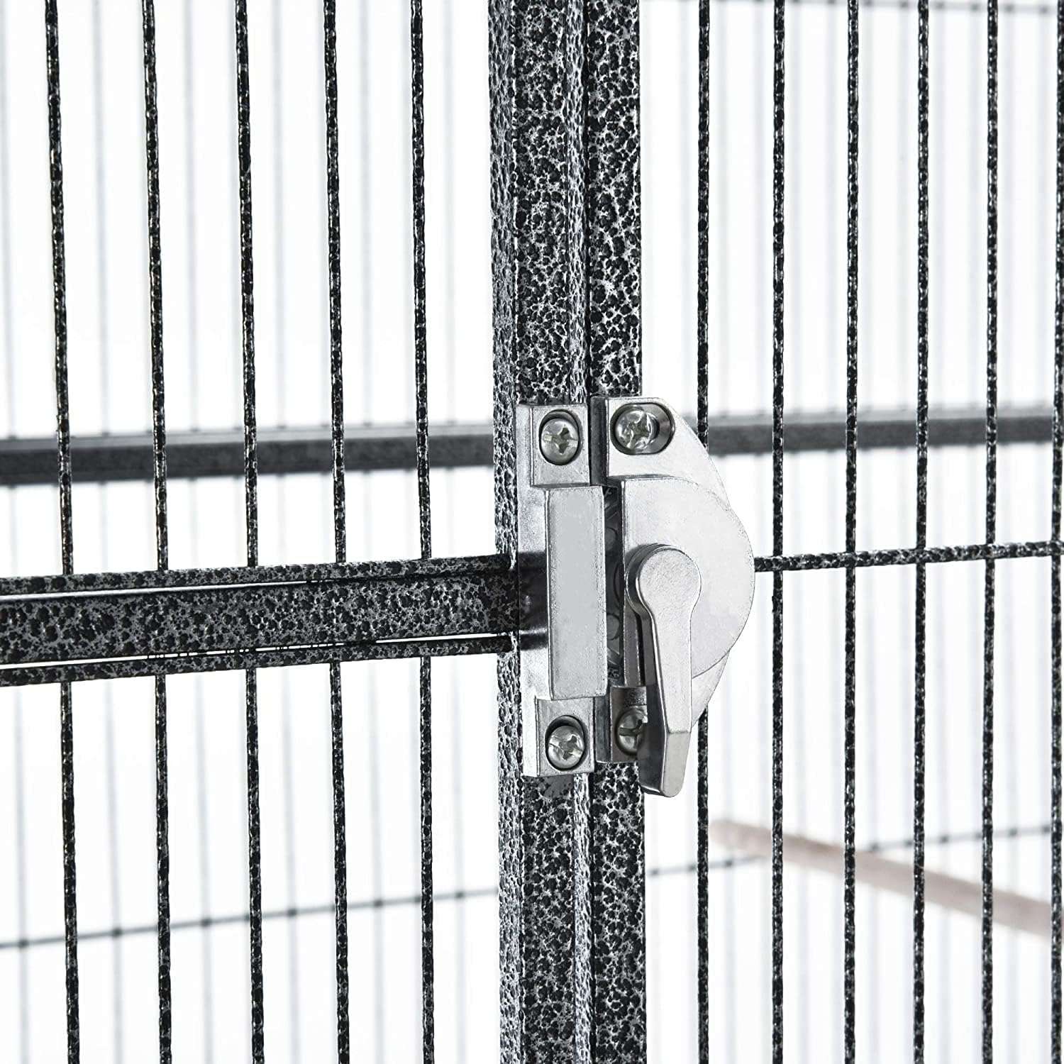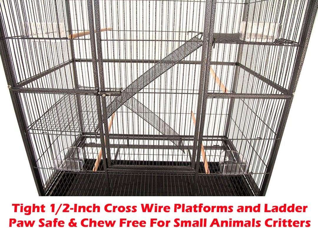 Fabricada totalmente en metal resistente y a prueba de mordidas (todo metal, sin plástico que masticar), esta jaula es duradera y segura. Cuenta con un espaciado estrecho de () para evitar escapes y accidentes.