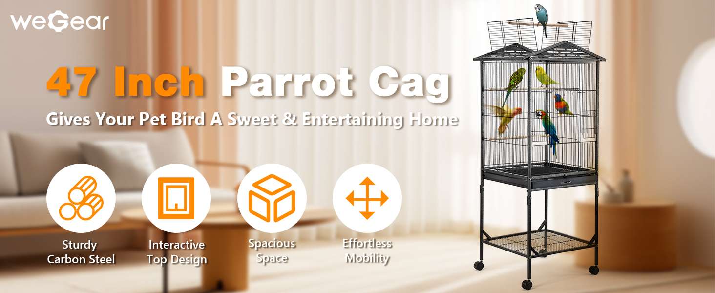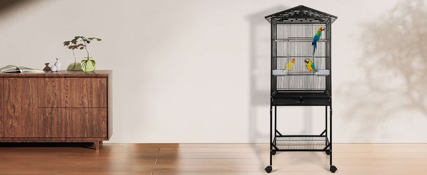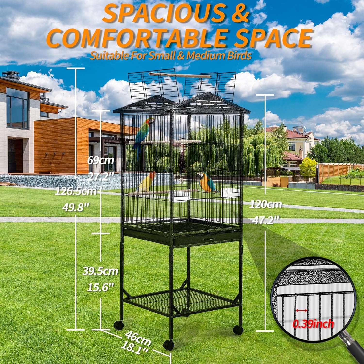 Jaula mediana para pájaros de hierro forjado de 47 pulgadas. La robusta construcción de hierro forjado hace que sea ideal para jaula de periquitos y jaula de loros. Diseño elegante que añade encanto. Duradero y proporciona un hogar cómodo para las aves.