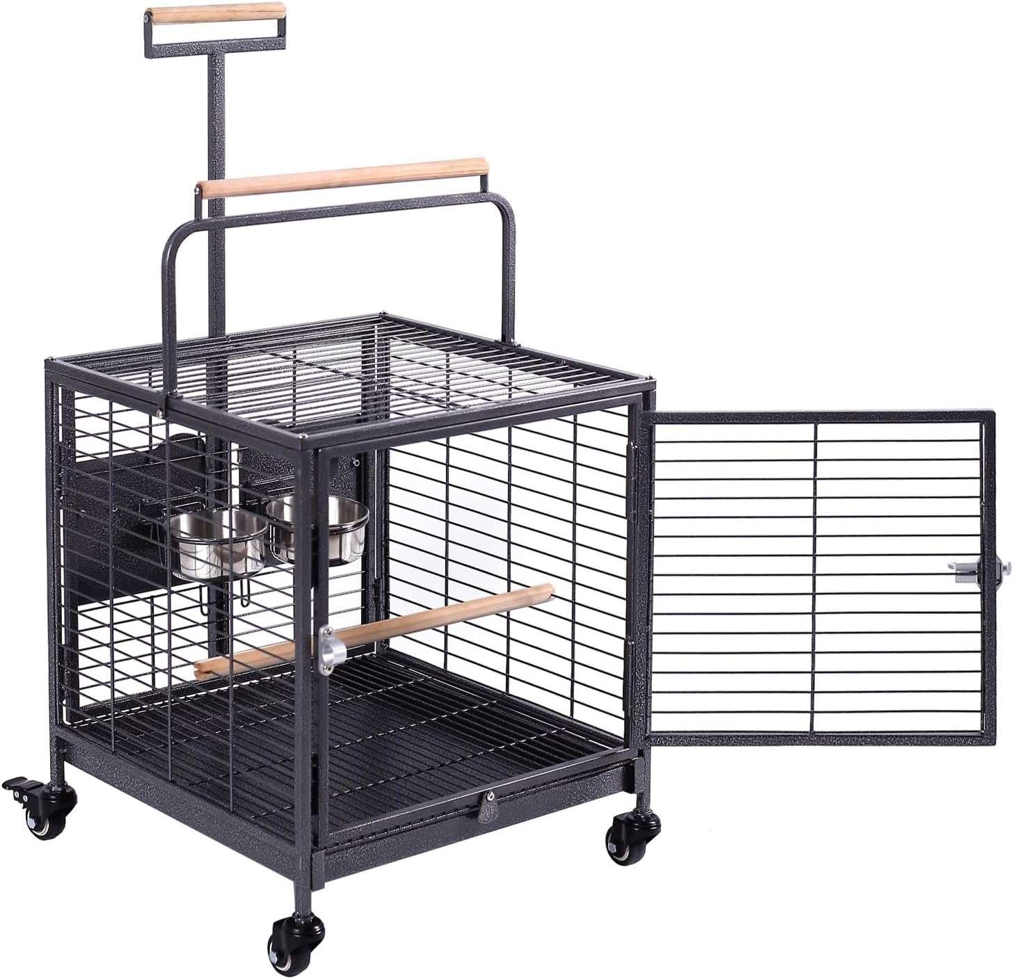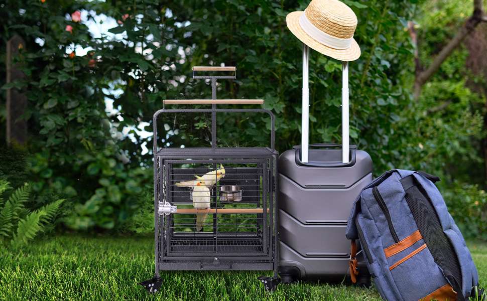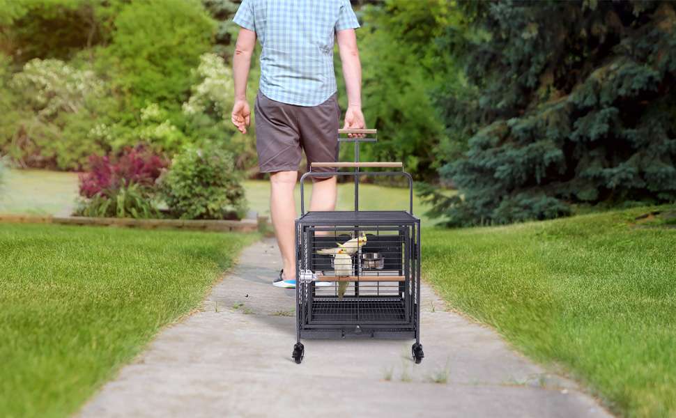 Portátil y ligera: esta jaula de viaje para pájaros está hecha para que el transporte y viaje con tu pájaro sea libre de estrés. 4 ruedas giratorias opcionales y un mango ergonómico retráctil hacen que sacar a tus pájaros de la casa sea súper suave y fácil. Esta jaula hace que los viajes al veterinario o parques sean muy fáciles.