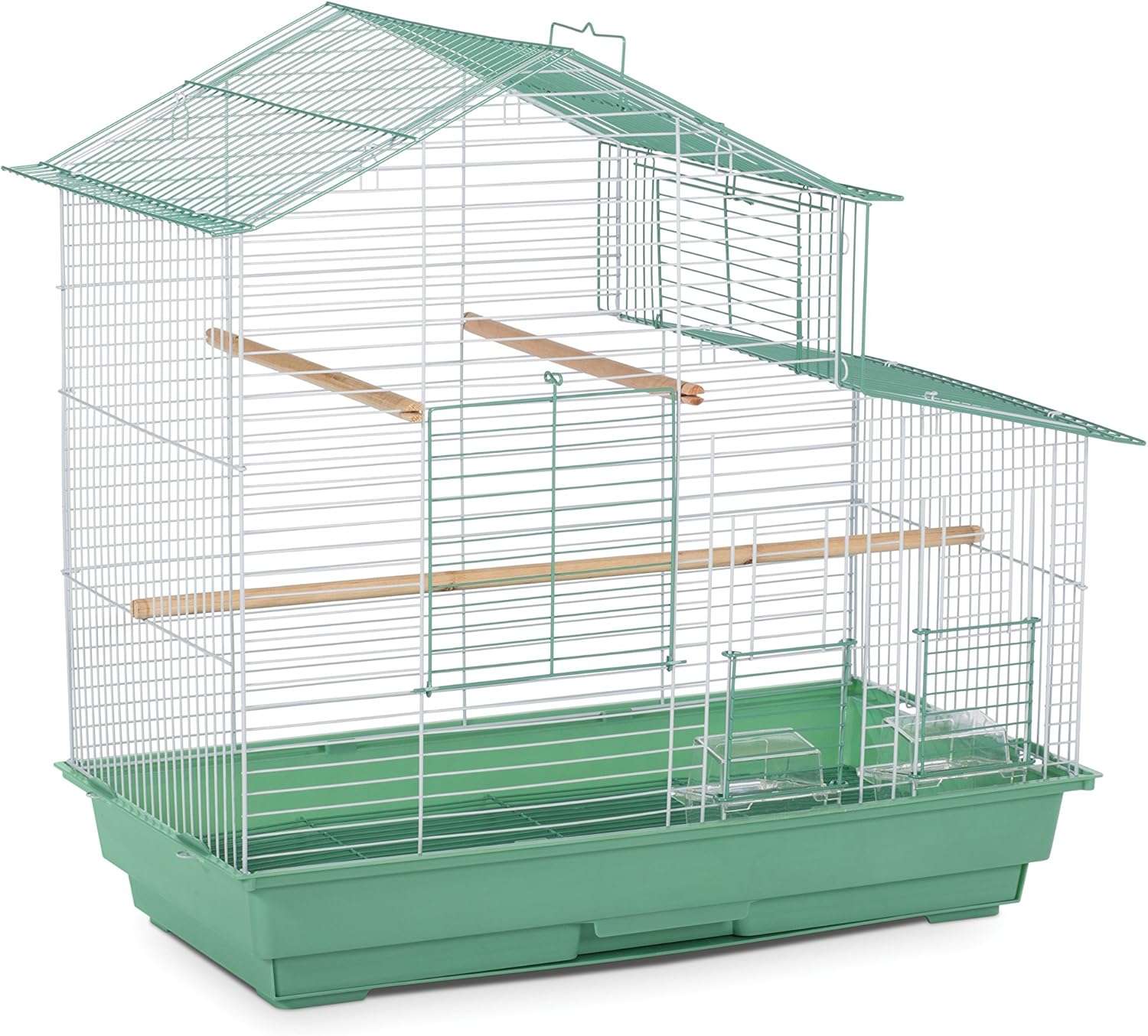 Características especiales | Diseño de techo estilo casa, puerta de acceso frontal estilo aterrizaje, puerta desplegable cerca de la línea del techo para componente de percha/escalera de juego, rejilla extraíble y bandeja de desechos extraíble para una fácil limpieza |