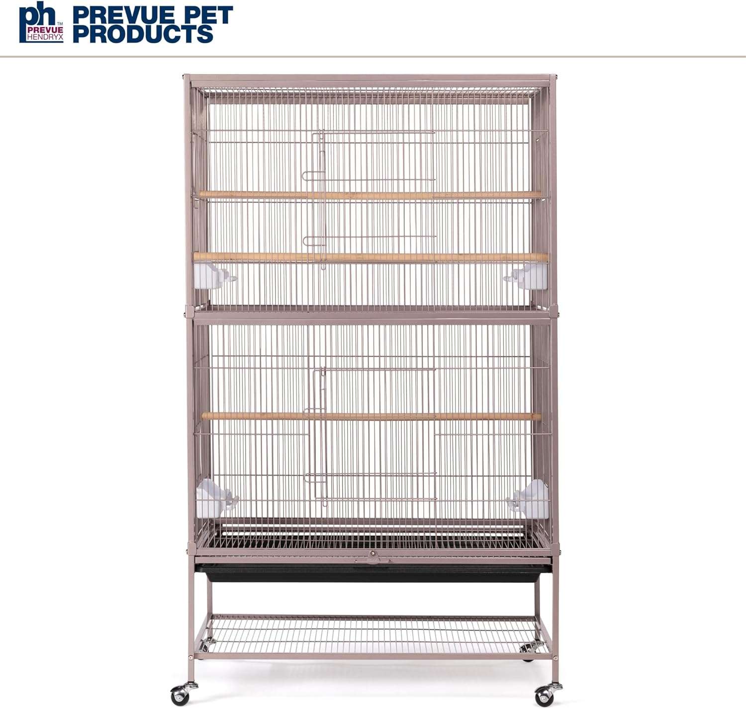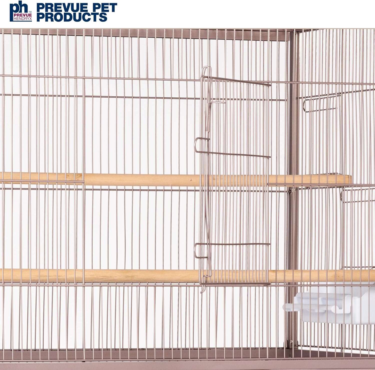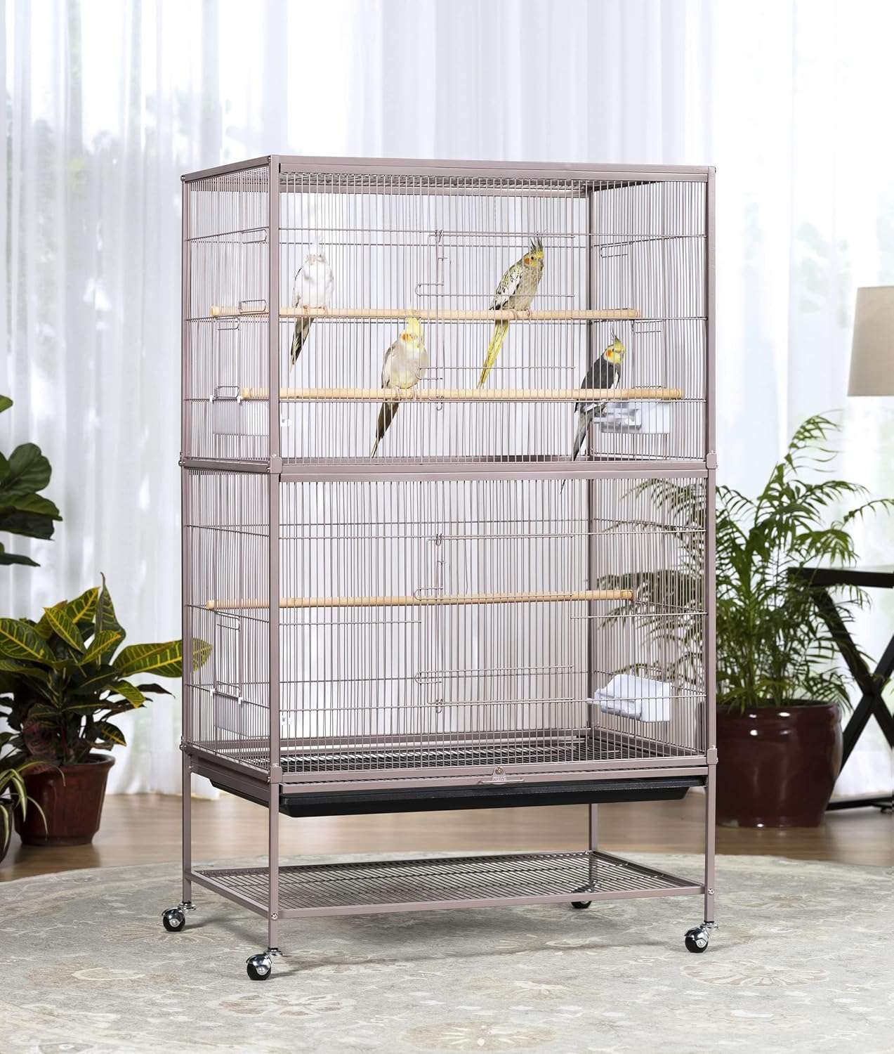 Cuatro tazas dobles de plástico y tres perchas de madera están incluidas en esta económica jaula extra grande