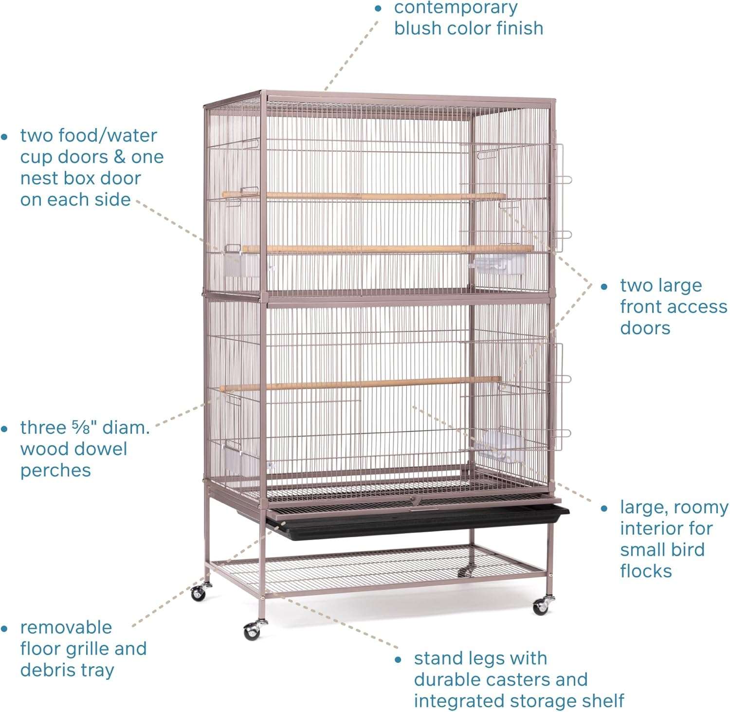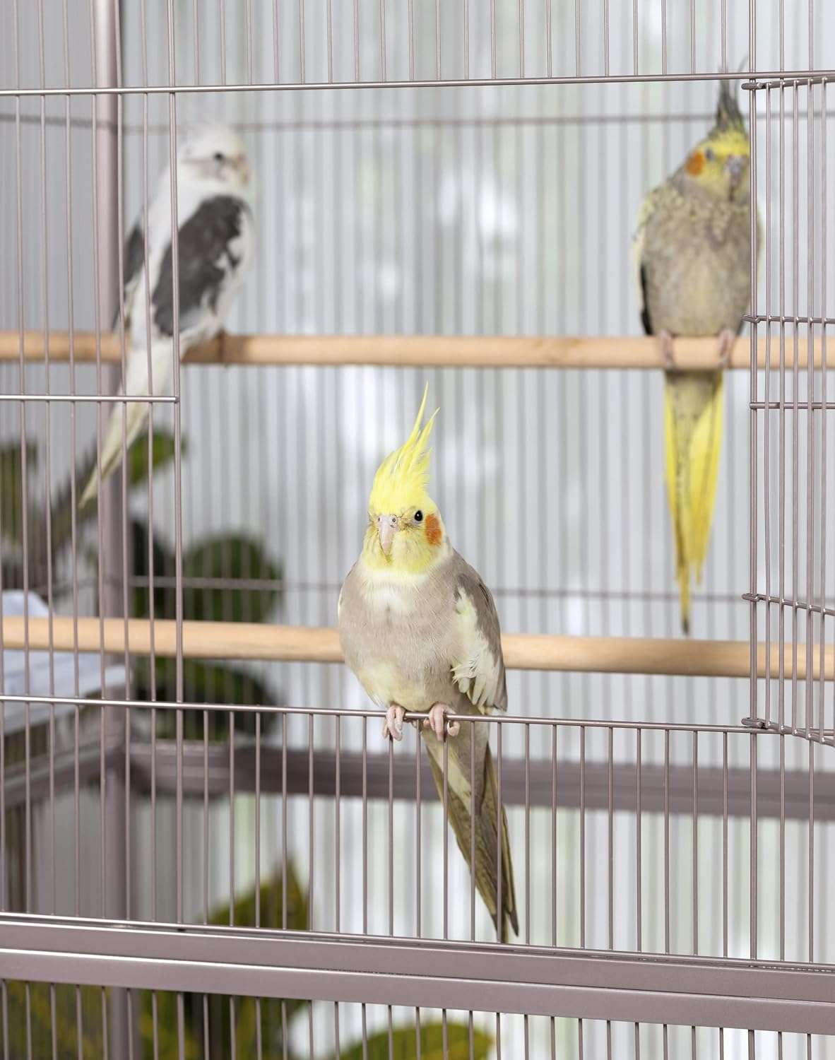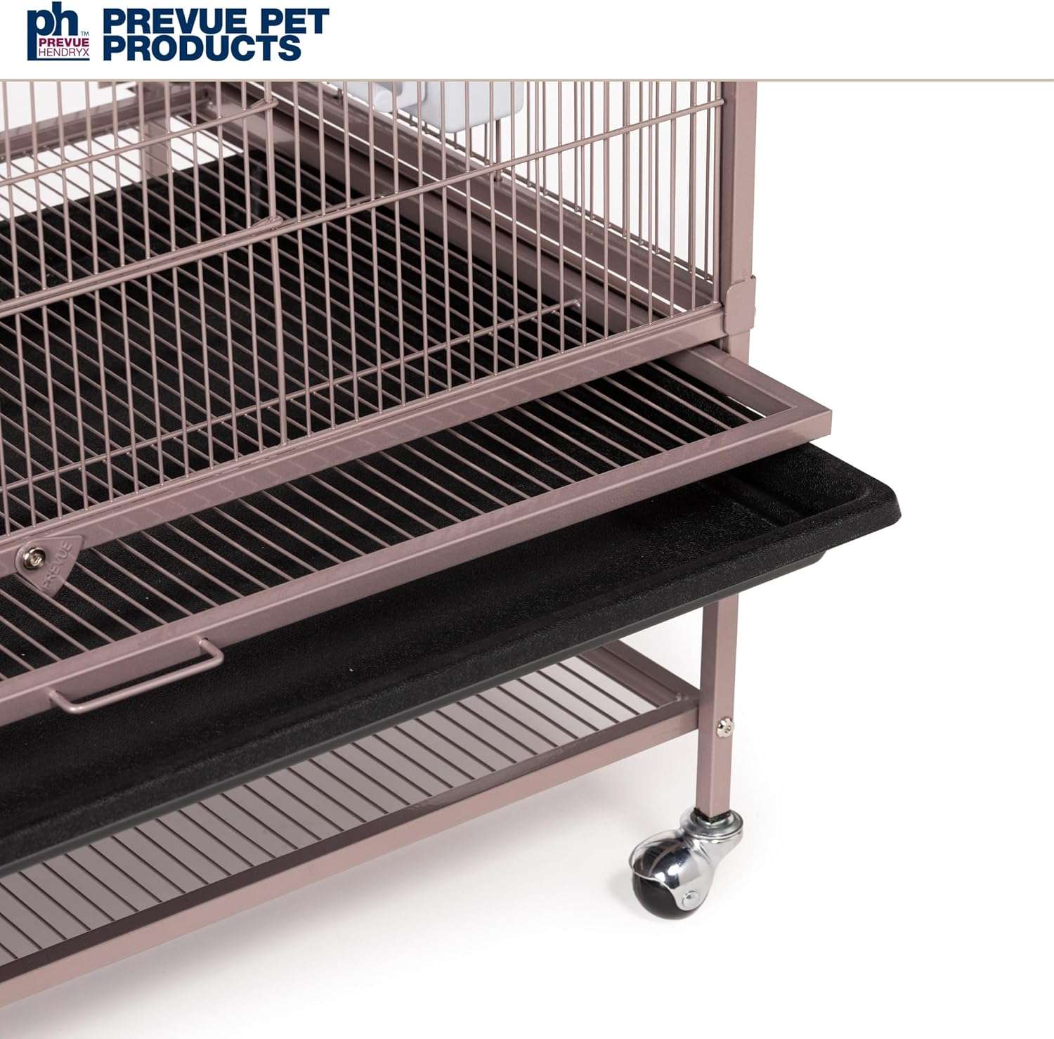 Cuatro tazas dobles de plástico y tres perchas de madera están incluidas en esta económica jaula extra grande