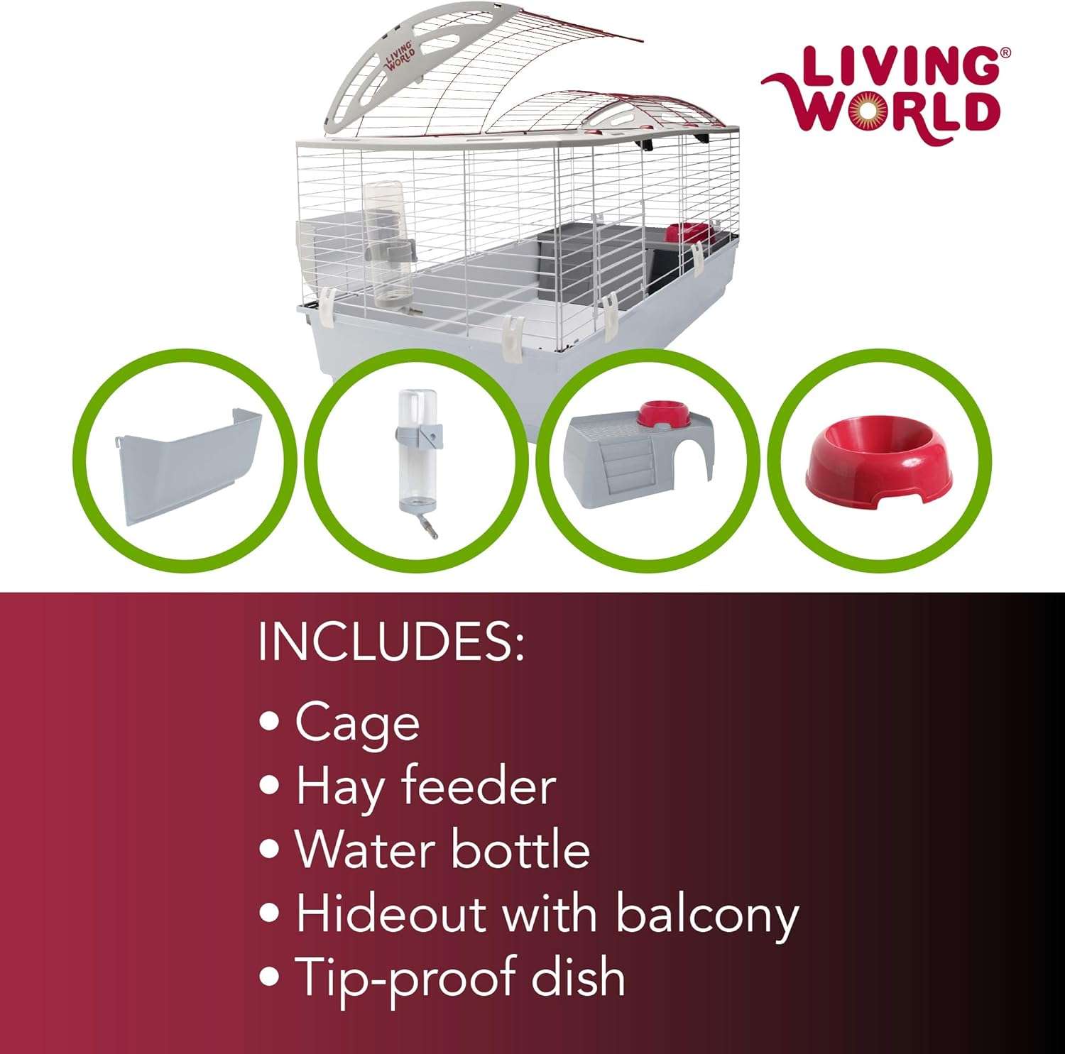 Componentes incluidos | Balcón, Botella de agua, Living World Habitat de lujo para mascotas, Protector de heno, X-Large |