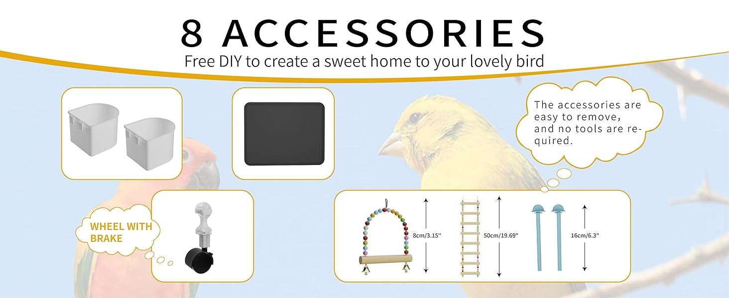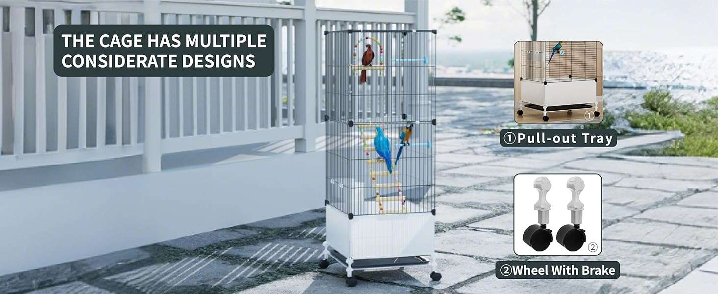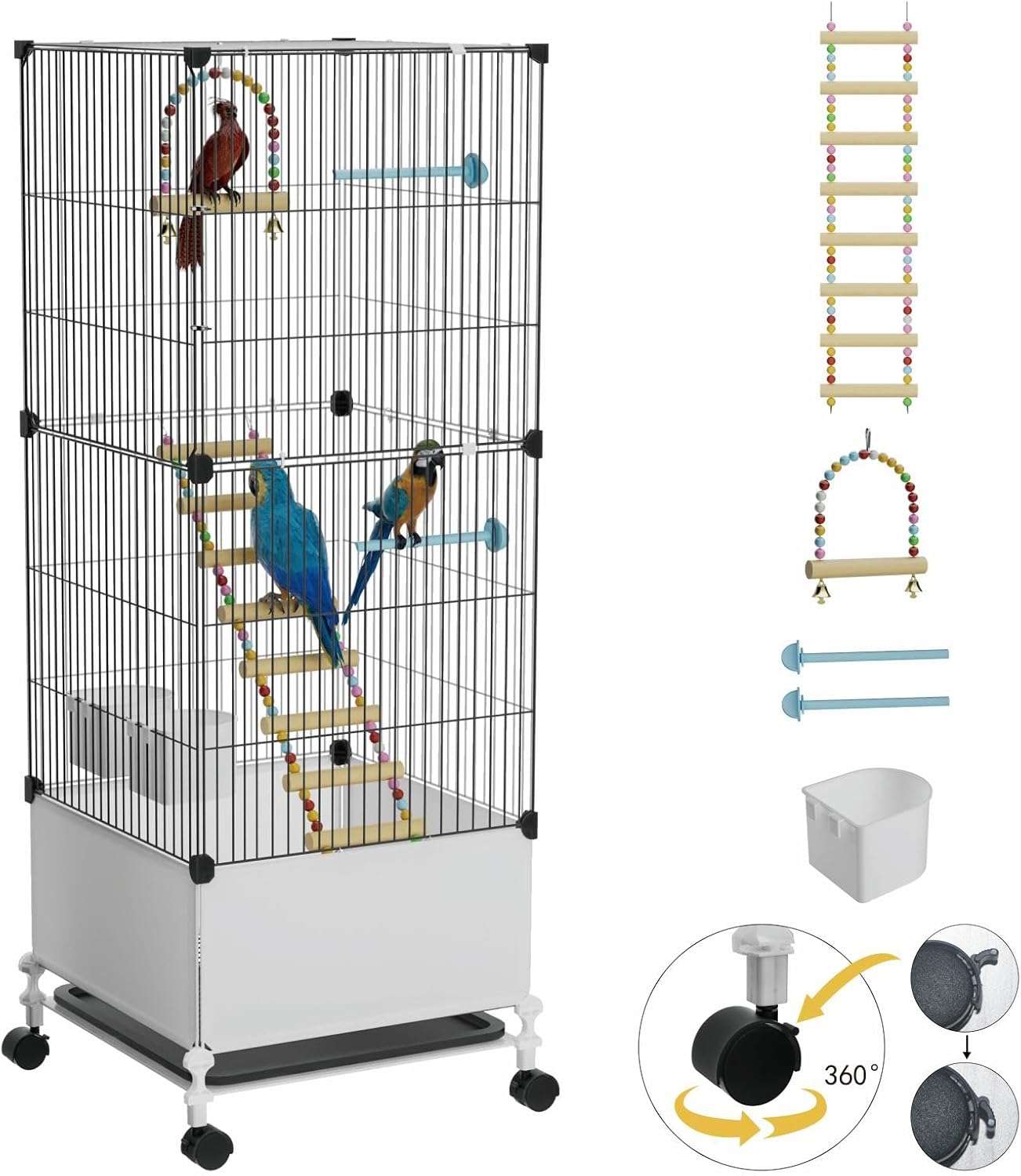 Fácil de mover: la jaula para pájaros está equipada con 4 ruedas universales, por lo que es fácil de mover y colocar en cualquier lugar, ya sea en interiores o exteriores en el jardín.