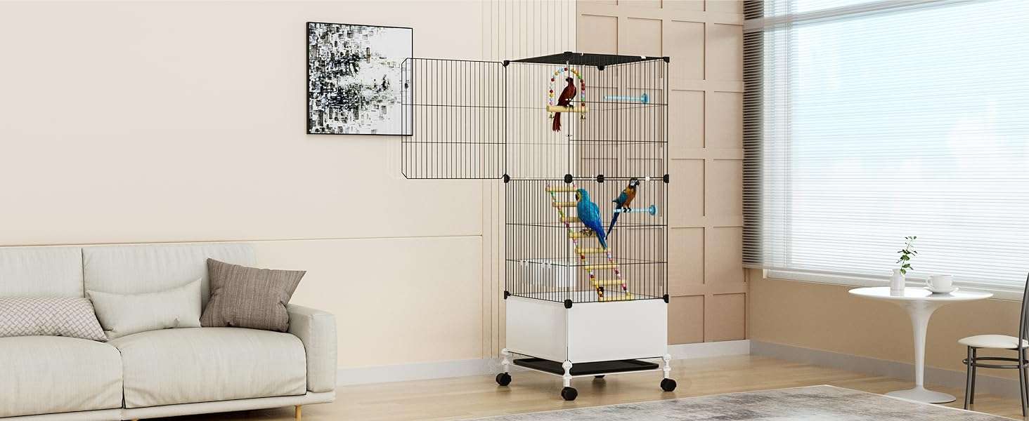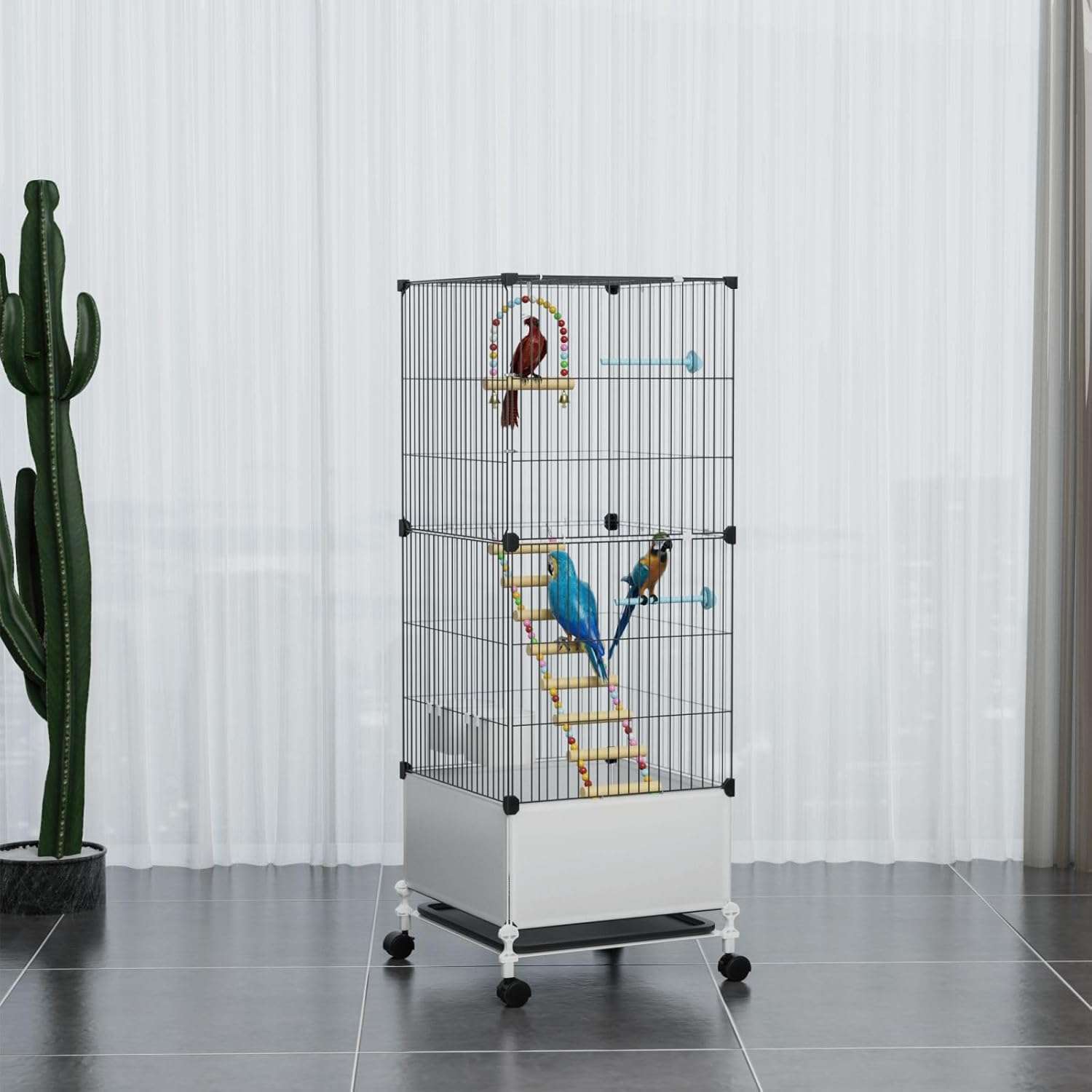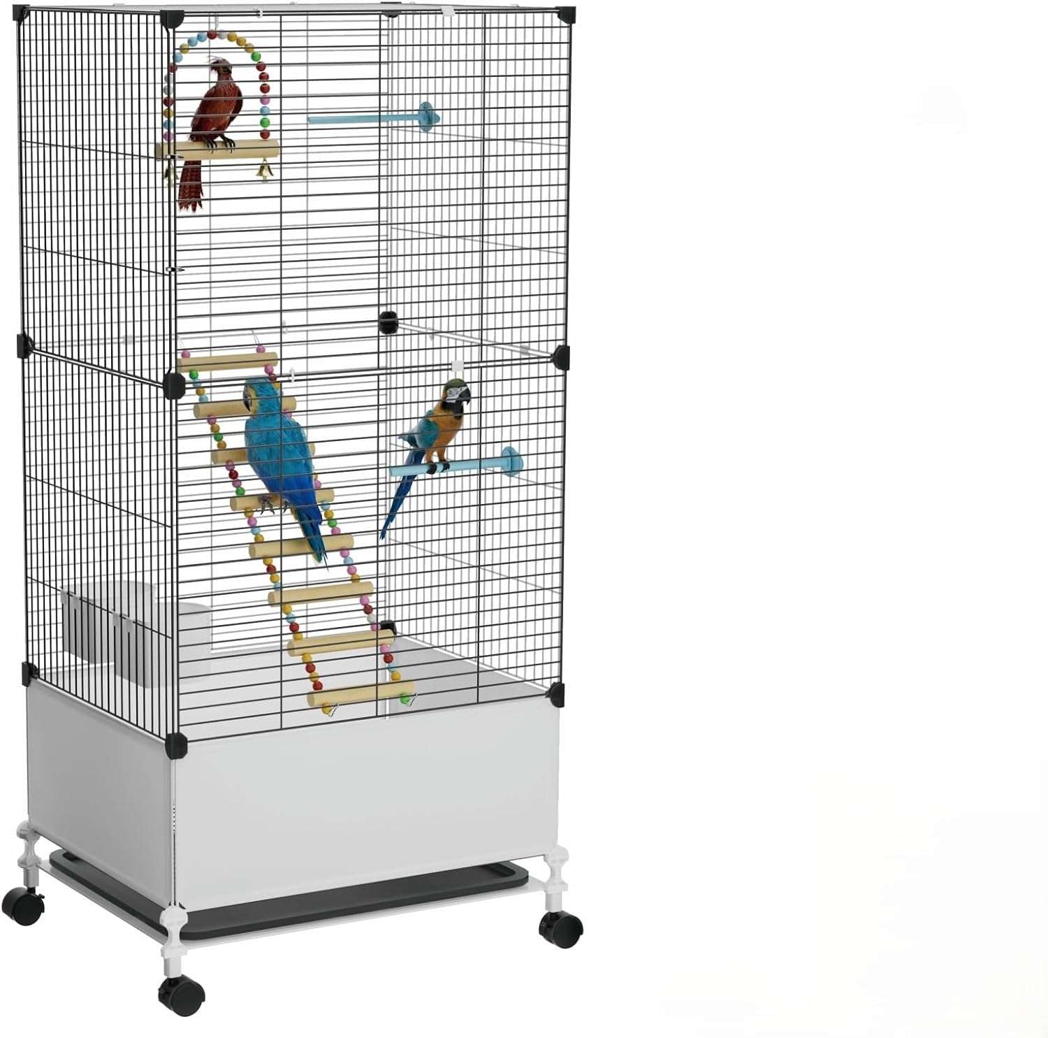 Fácil de mover: la jaula para pájaros está equipada con 4 ruedas universales, por lo que es fácil de mover y colocar en cualquier lugar, ya sea en interiores o exteriores en el jardín.