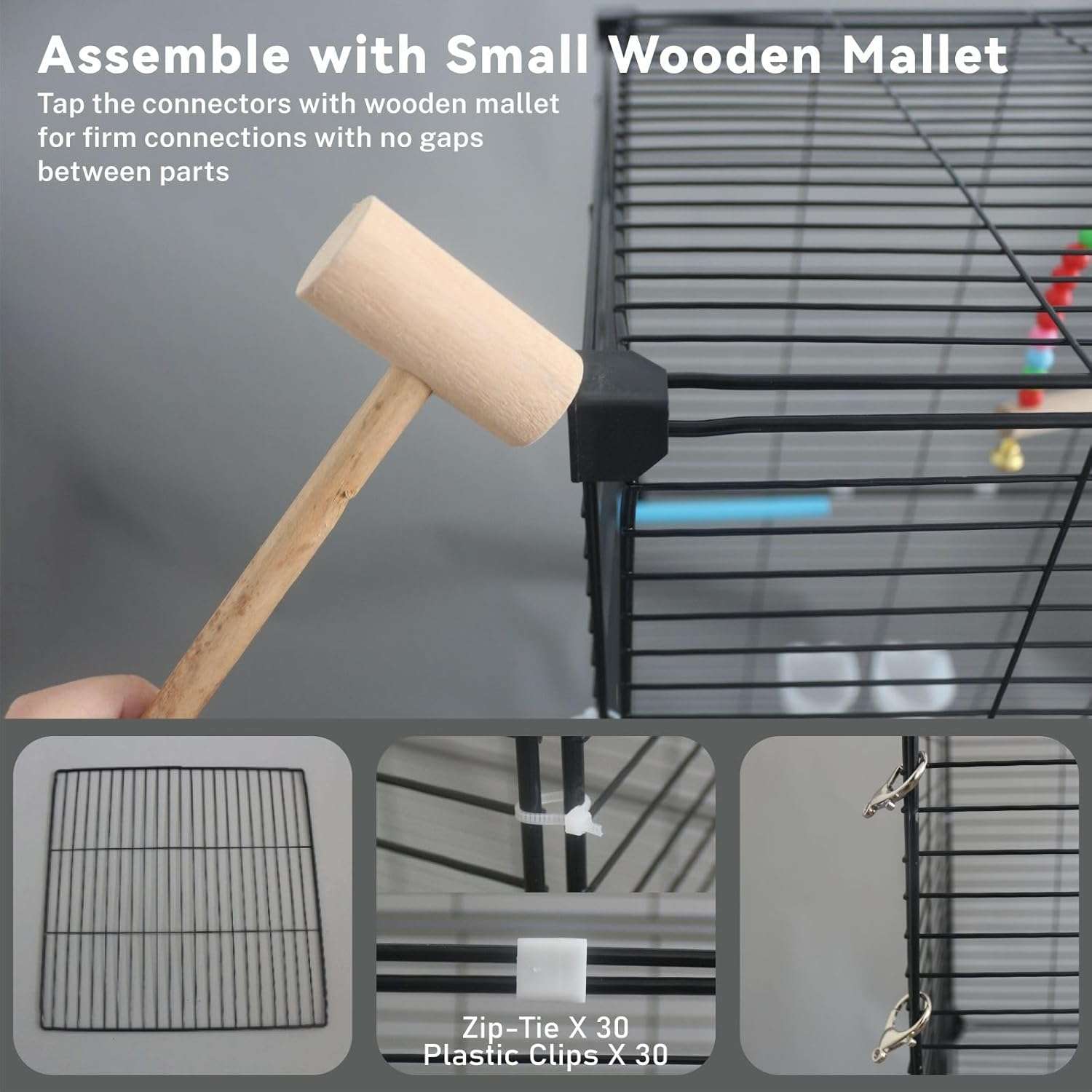Fácil montaje: El paquete incluye todos los accesorios y herramientas necesarios para el montaje. Las instrucciones detalladas facilitan el proceso. Consejo: El uso de clips y cremalleras de plástico asegura que la jaula sea más estable y segura.