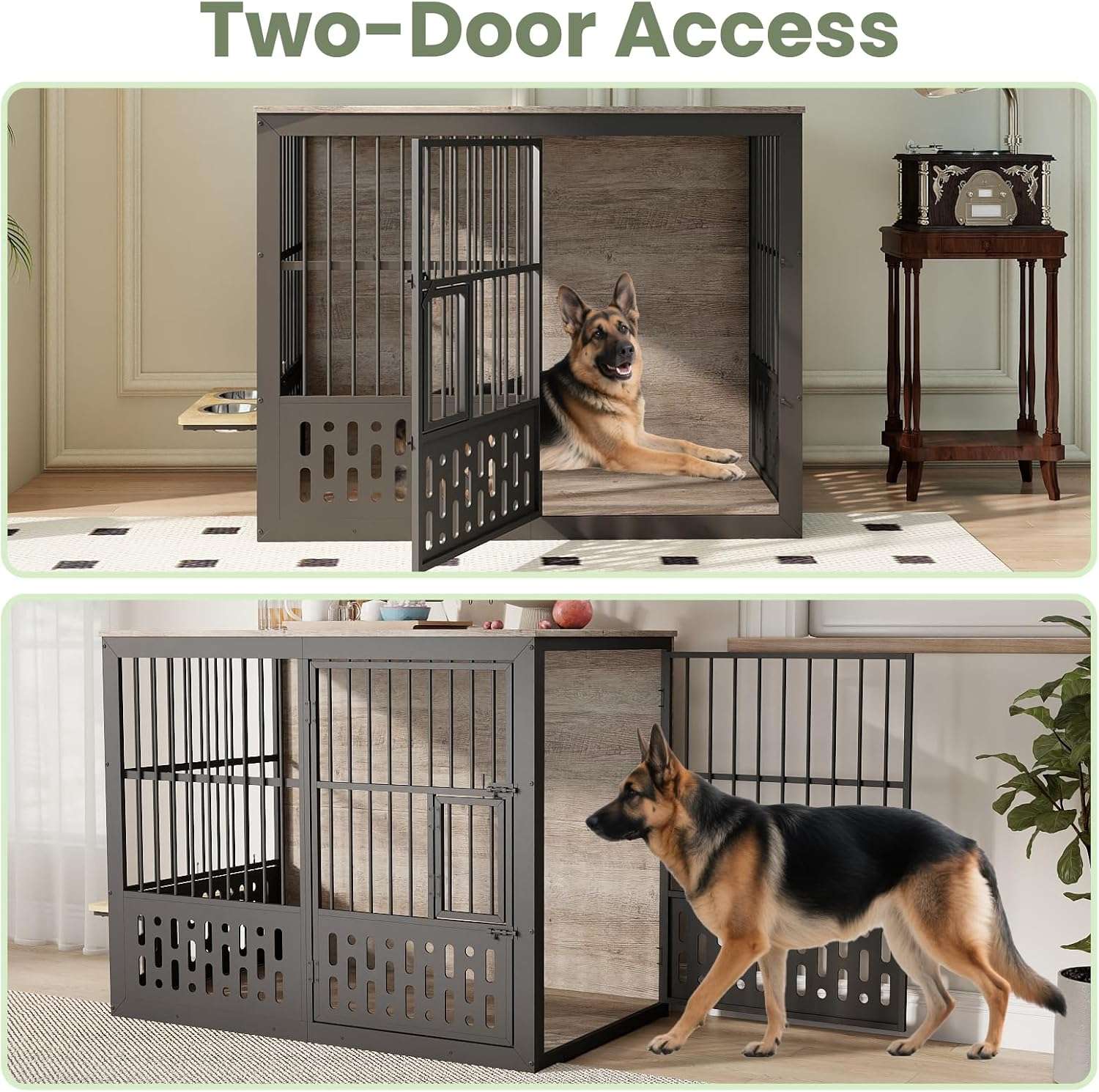 Este mueble jaula para perros de tamaño extra grande es la opcion mas completa y buscada en Chile para quienes desean un espacio interior seguro para razas medianas y grandes Su diseño elegante de estilo retro se adapta perfectamente a la decoracion del hogar funcionando como una amplia mesa auxiliar o de arrimo que aporta sofisticacion a cualquier habitacion