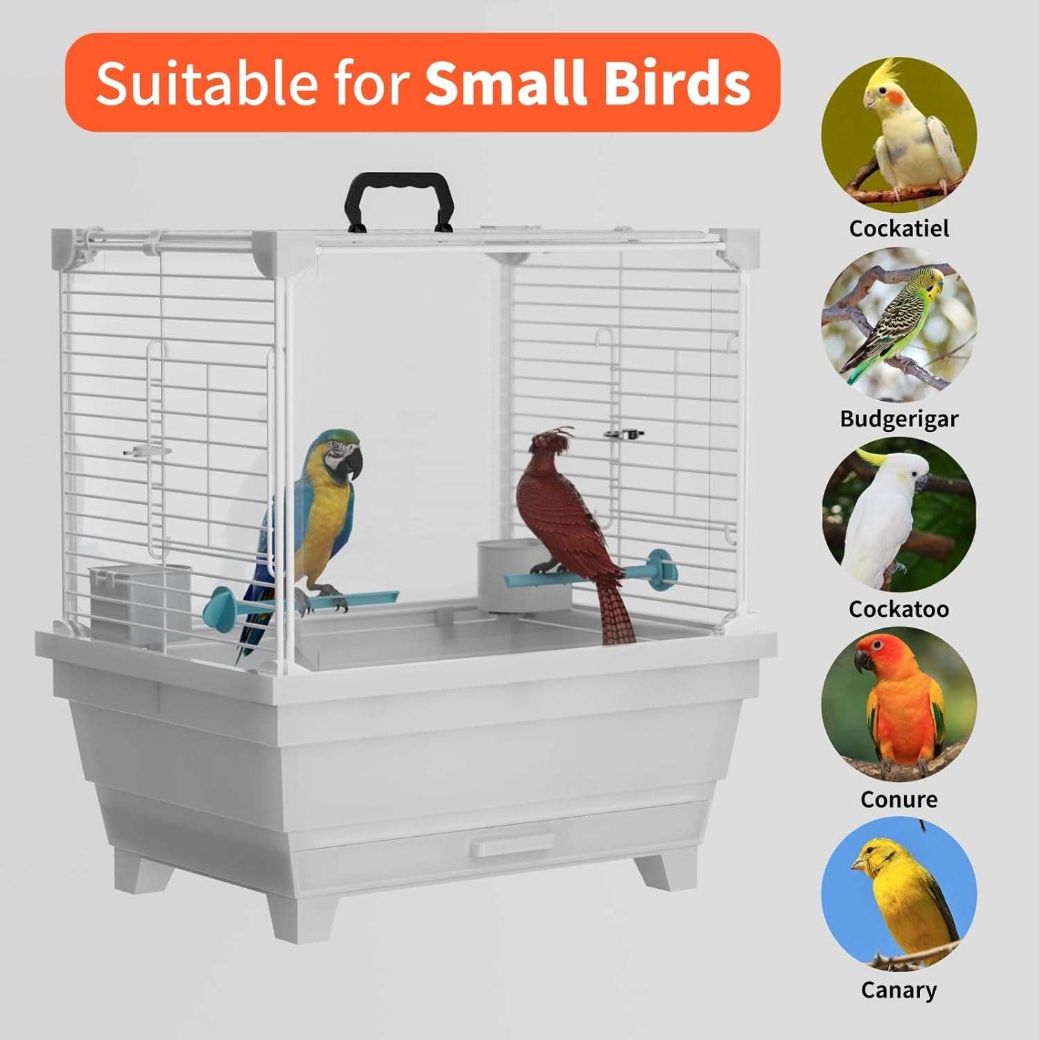 Fácil de transportar: esta jaula pesa solo 4.5 lbs y cuenta con un mango conveniente, por lo que es ligero y fácil de llevar. Esta jaula para pájaros hace que los viajes al veterinario o parques sean muy fáciles.