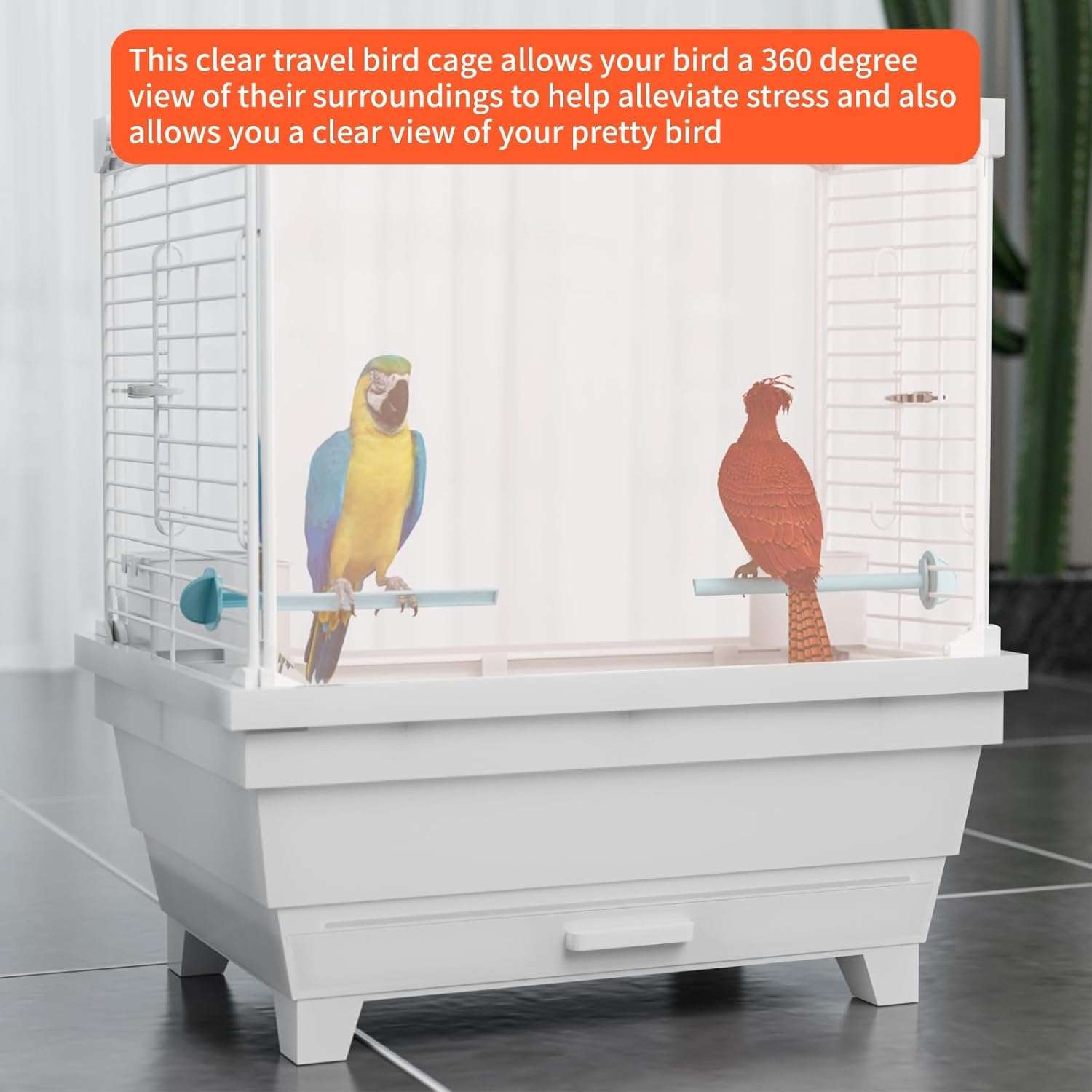 Diseño claro: nuestra jaula para pájaros cuenta con paneles transparentes en lados opuestos, ofreciendo una vista transparente que permite a tu pájaro observar libremente su entorno y ayuda a reducir la ansiedad. Al mismo tiempo, te permite disfrutar fácilmente viendo los movimientos animados y elegantes de tu ave.