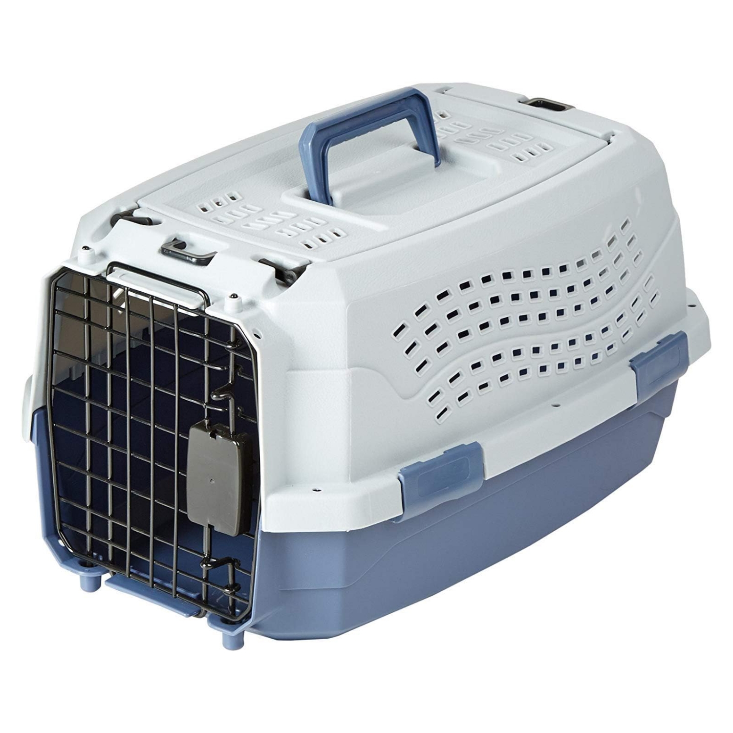 Hecho de plástico duradero con una puerta frontal de alambre de acero, la perrera superior de dos puertas de AmazonBasics ofrece fuerza, seguridad y visibilidad, junto con mucha ventilación en los laterales, la parte superior y la parte posterior de la perrera.