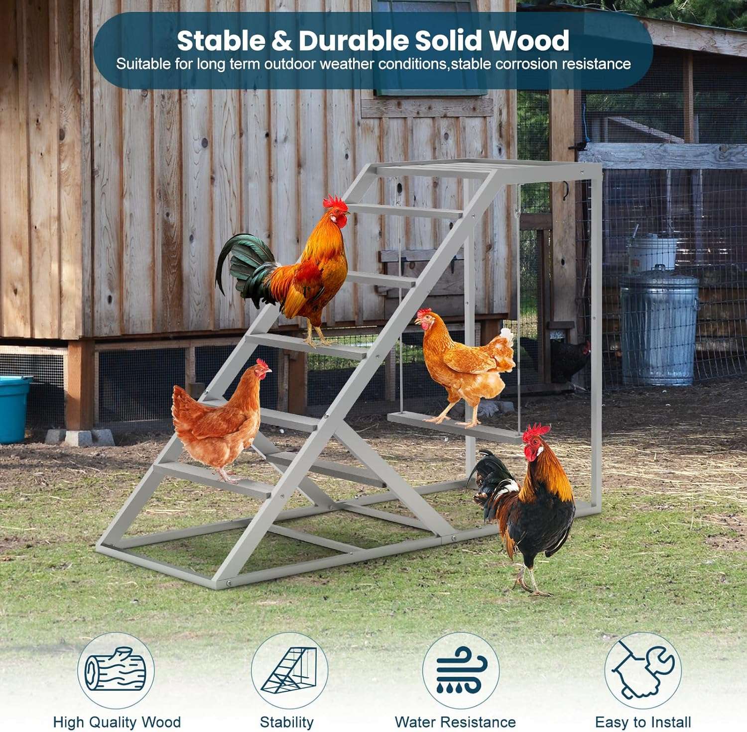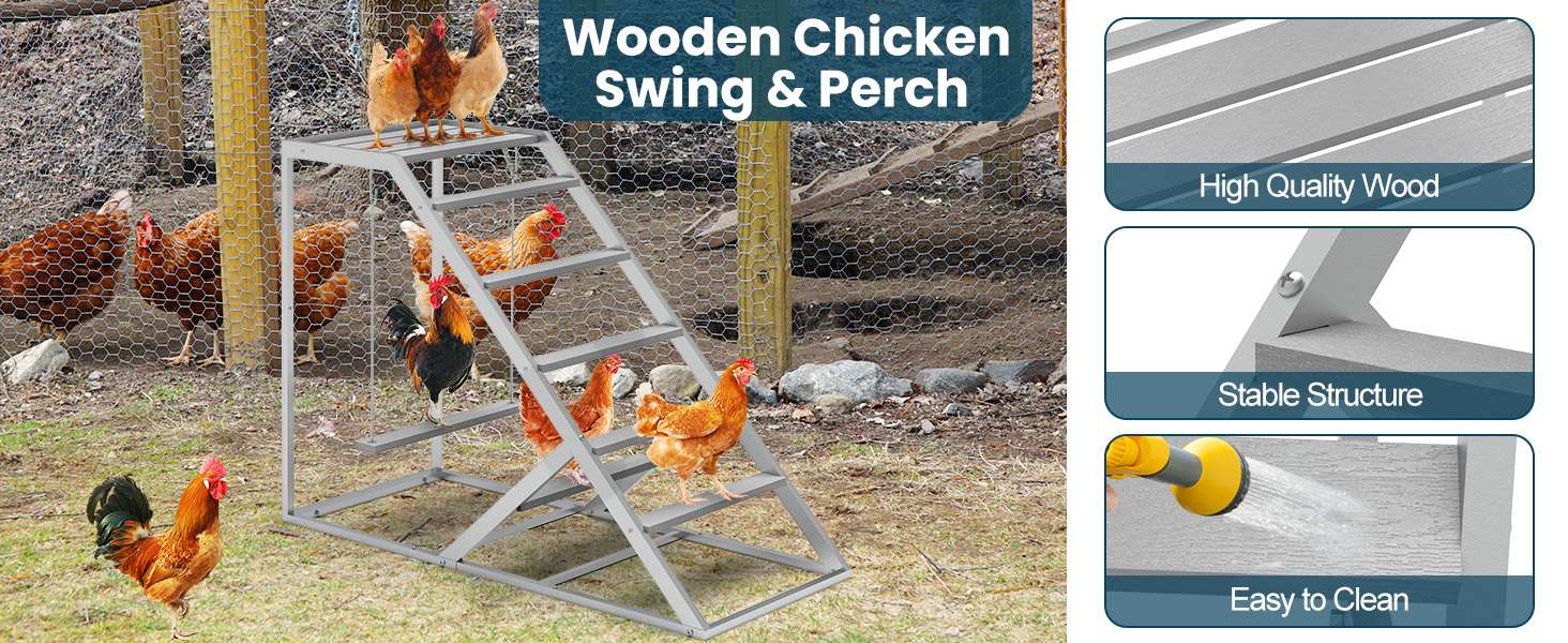 Entretenimiento Multifuncional Este no es solo un accesorio para gallinas; su diseño versátil lo hace perfecto también para otras mascotas como conejos, gatos o aves domésticas. Puedes instalarlo dentro del gallinero o en el patio al aire libre para crear un entorno dinámico donde tus animales puedan interactuar y ejercitarse.