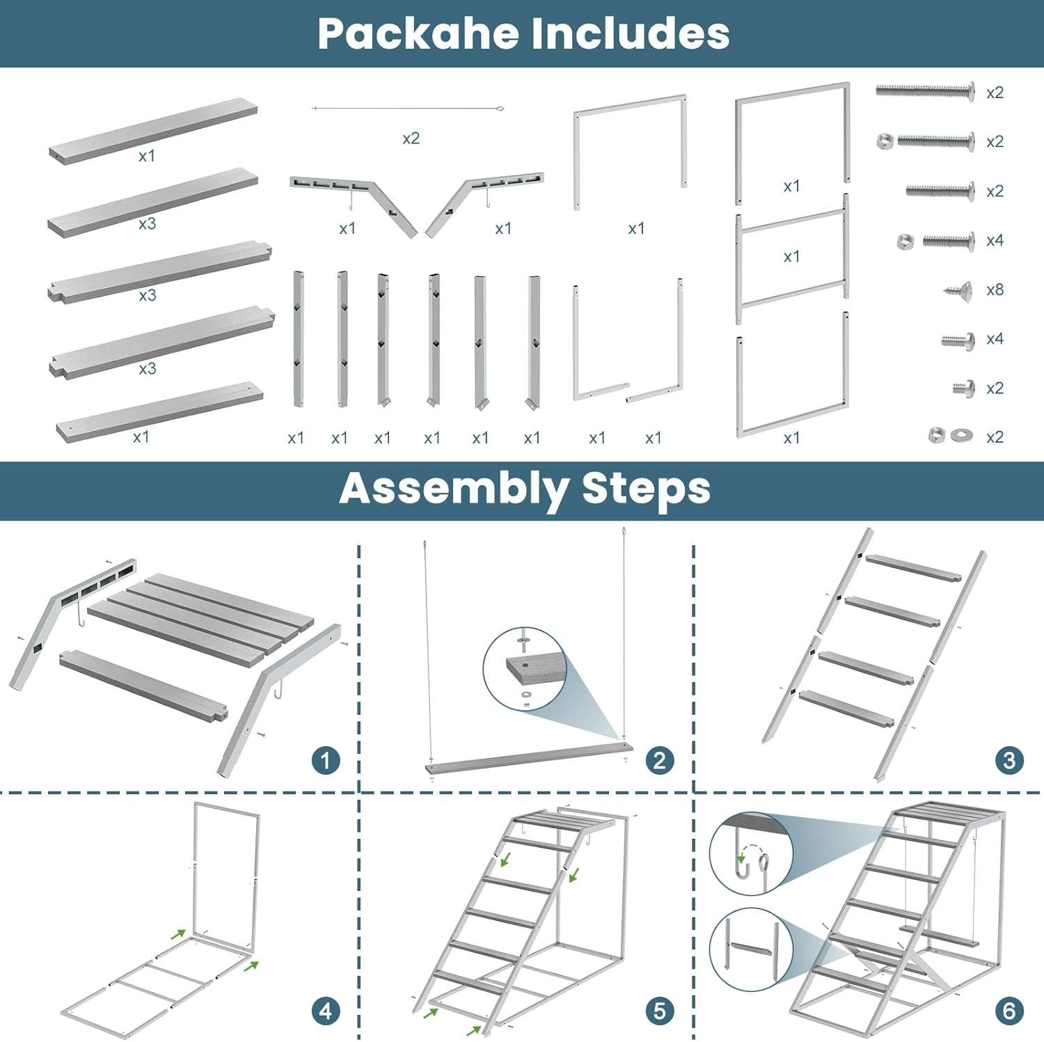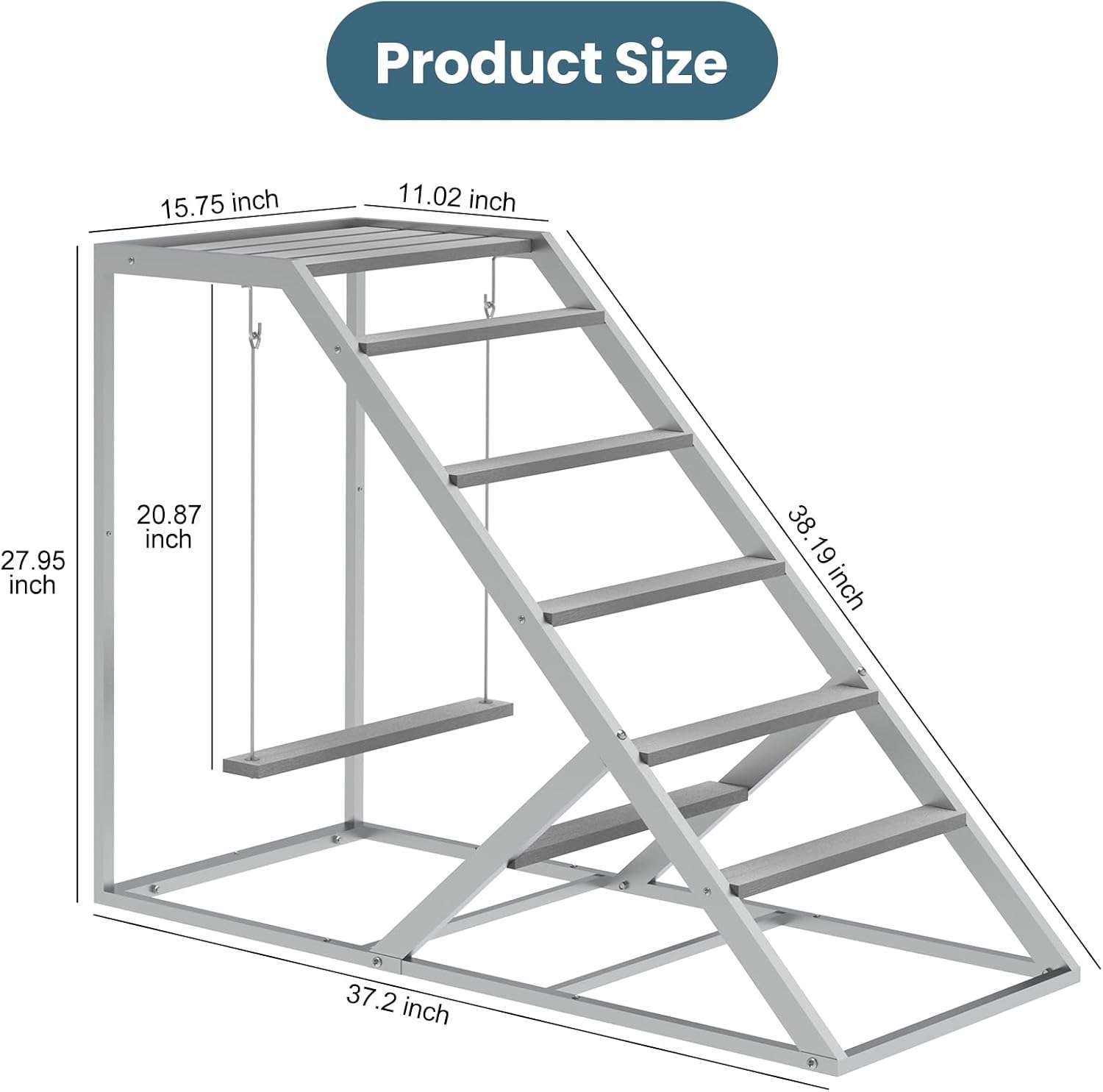 Materiales Resistentes y Seguros Fabricado para durar, este juego combina tubos de metal con tratamiento anticorrosión y madera orgánica recubierta con pintura a base de agua (no tóxica). Esta mezcla garantiza una estructura firme que soporta el uso diario y el clima, además de ofrecer una superficie fácil de limpiar que a las aves les encanta.