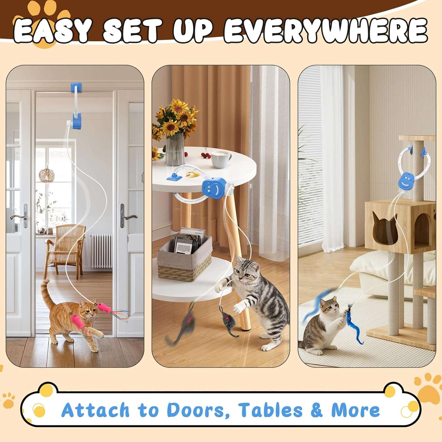 Este juguete interactivo colgante para gatos es la opcion mas buscada en Chile para mantener a su felino activo y entretenido dentro del hogar Su diseño innovador incluye una abrazadera antideslizante ajustable que se fija de forma totalmente segura a los marcos de las puertas escritorios o rascadores que tengan un grosor de entre 3 a 18 centimetros creando un area de juego vertical perfecta sin ocupar espacio valioso en el suelo