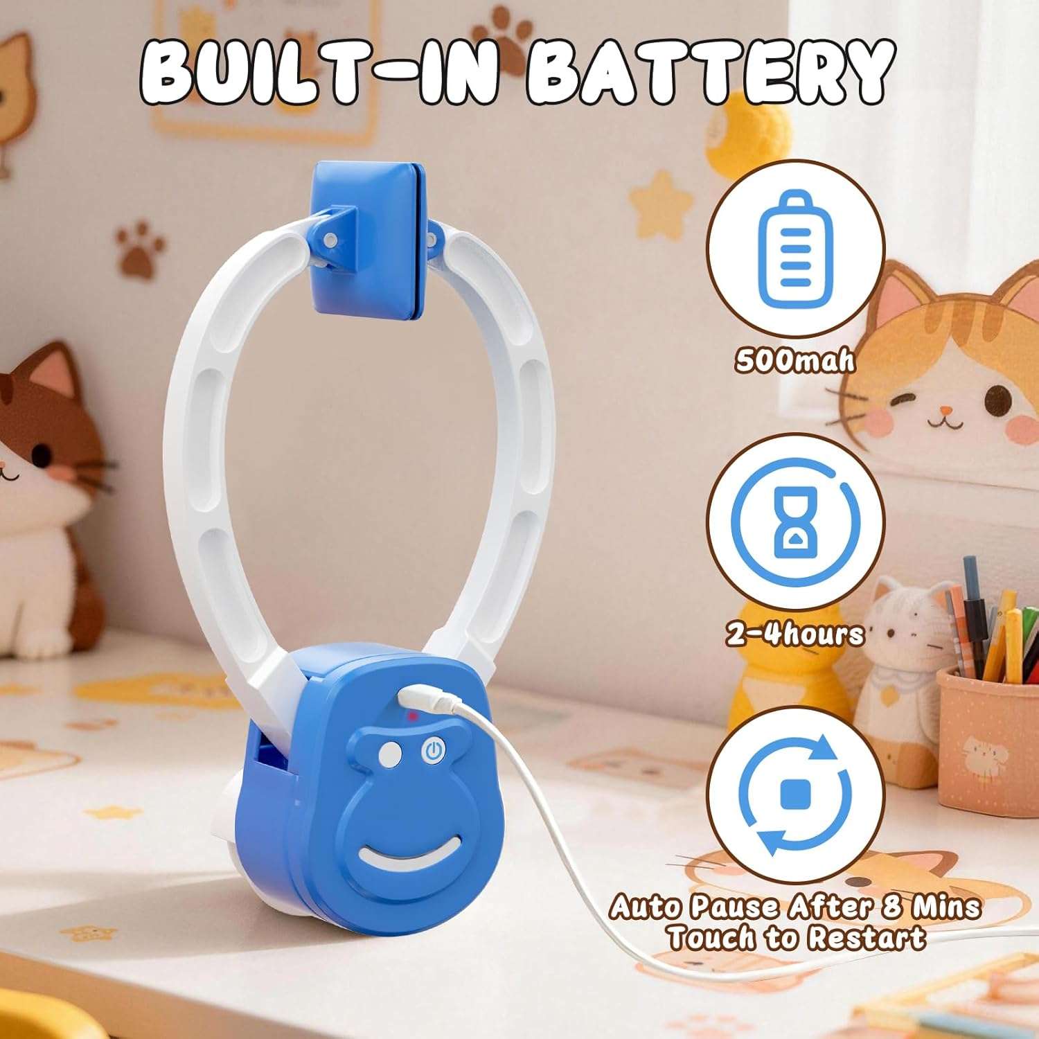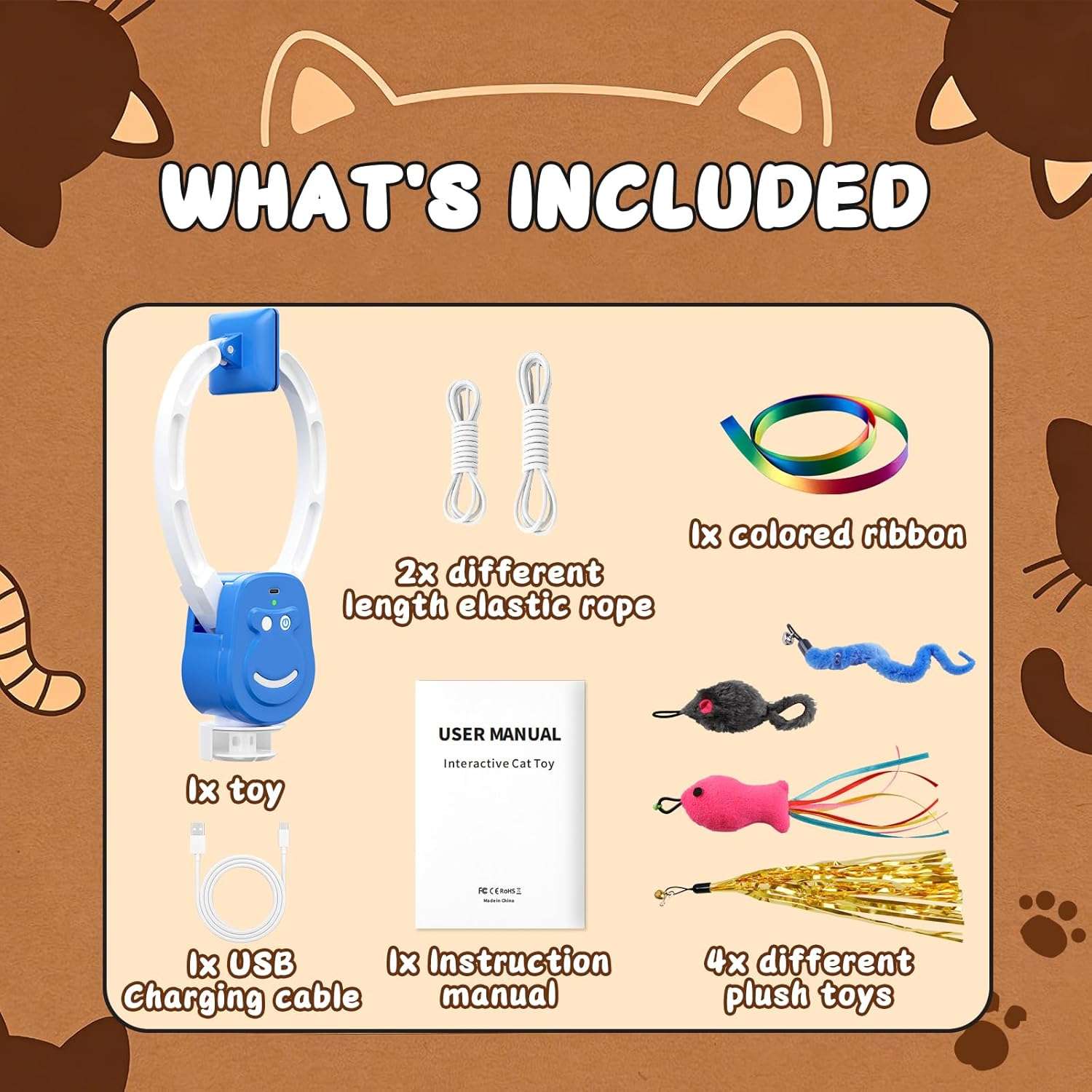 Este equipo es totalmente ajustable a la altura de su felino e incluye dos cuerdas elasticas que alcanzan hasta los 2 metros de largo junto con juguetes de peluche intercambiables en forma de pajaro Ademas incorpora una bateria interna de 500 mah recargable mediante conexion usb tipo c que se carga completamente en solo dos horas ofreciendo hasta tres horas de juego ininterrumpido Se recomienda por seguridad no utilizar el producto mientras se encuentra enchufado a la corriente