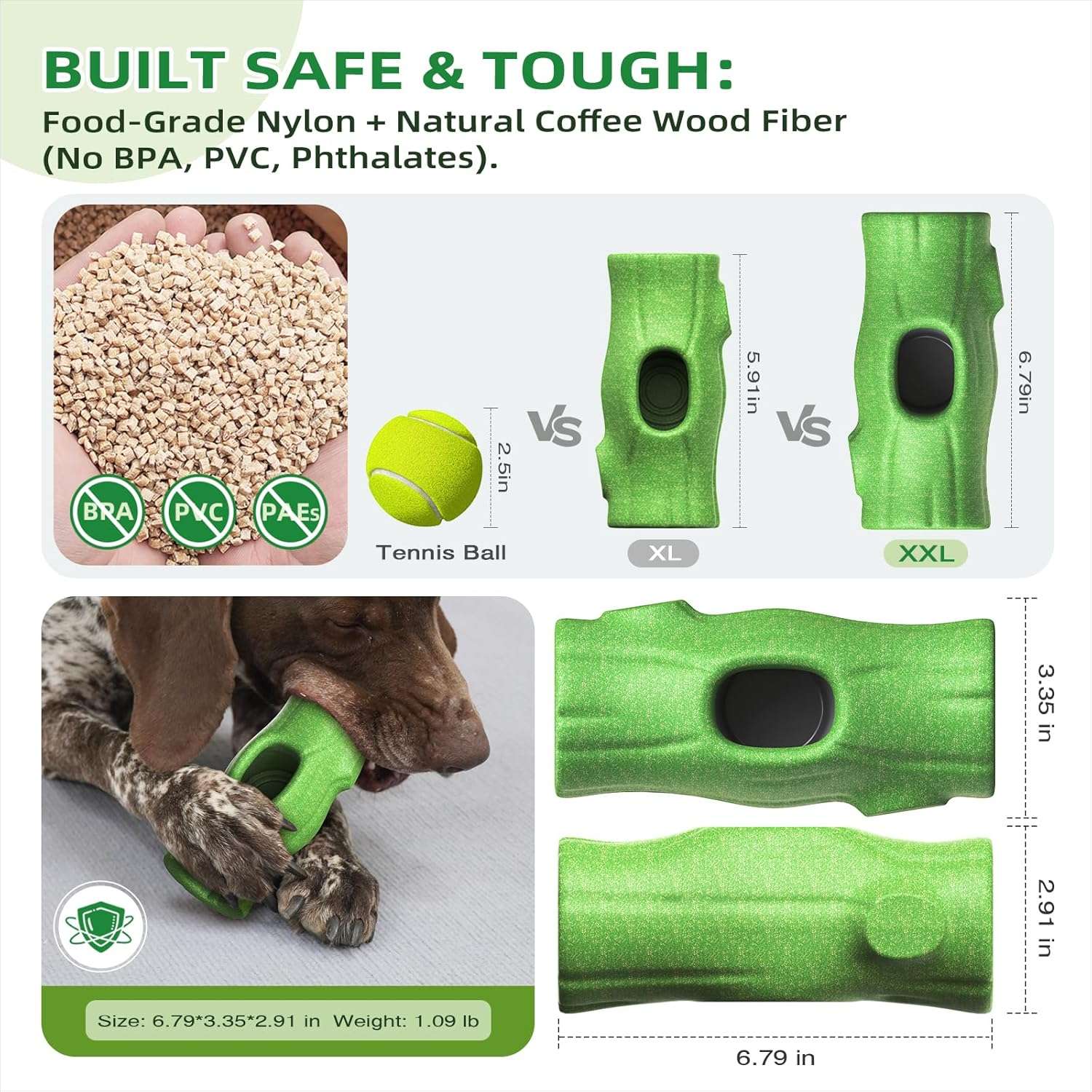 Fabricado con un material de nailon de grado alimenticio y reforzado con fibra de madera de café natural este producto es altamente resistente y seguro Esta totalmente libre de elementos tóxicos siendo ideal para soportar las sesiones de masticación mas intensas de su mascota y ayudando al mismo tiempo a mantener una excelente higiene dental diaria gracias a sus superficies texturizadas