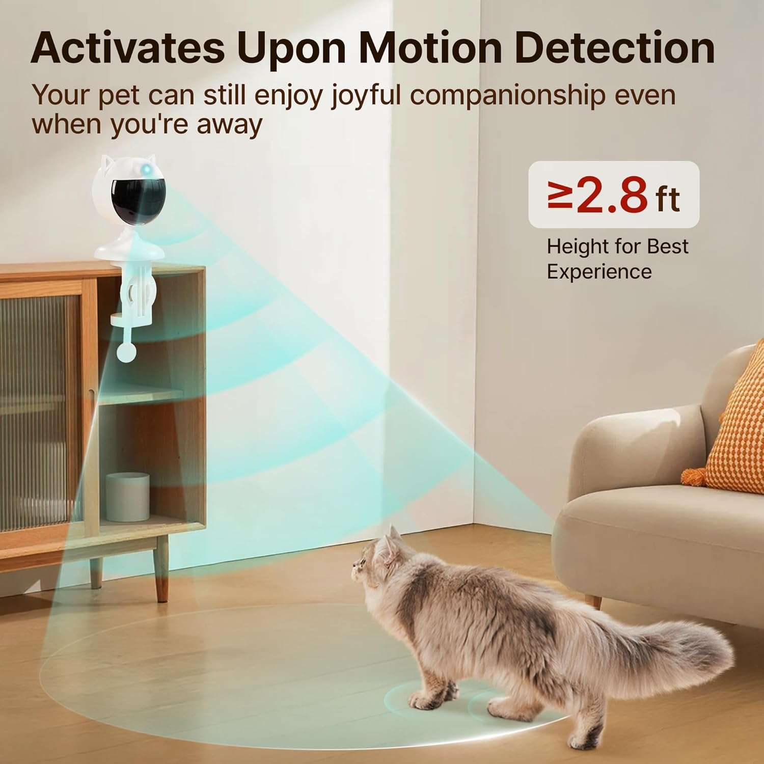 El dispositivo cuenta con un sensor de movimiento inteligente y un modo de espera automatico Al seleccionar el modo de deteccion el juguete se activa de inmediato cada vez que percibe la actividad de su animal cerca trabajando de forma continua durante cinco minutos Si despues de este tiempo no hay movimiento cercano el equipo se apaga automaticamente para ahorrar energia de forma eficiente