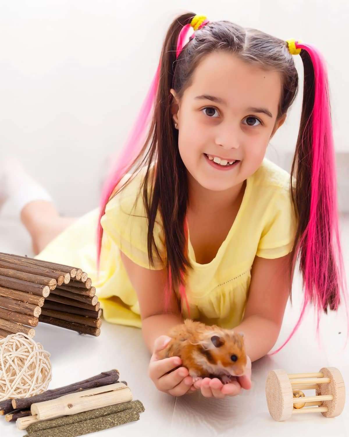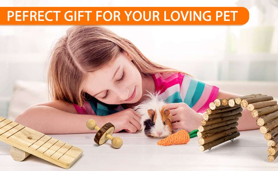 Regalo perfecto: los juguetes naturales de conejillo de indias son perfectos para ayudar a los animales pequeños a moler sus dientes en constante crecimiento, así como evitar que mastiquen su jaula y otros muebles. Regalo perfecto para tus mascotas amorosas.