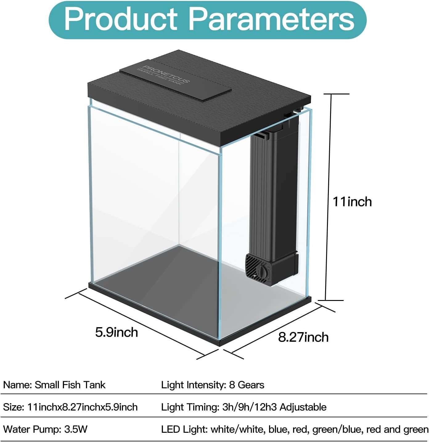 Hábitat saludable: la pequeña pecera está equipada con luces de brillo ajustables y ajustes de temporizador de 3/9/12 horas, lo que le permite proporcionar un ambiente saludable y libre de estrés para su pez favorito.