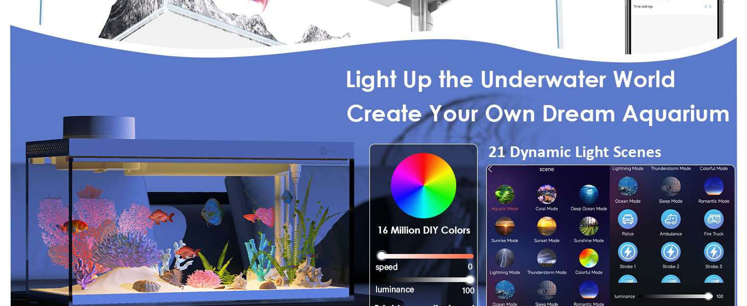 Experiencia visual mejorada: nuestro acuario de peces con el fascinante sistema de iluminación LED de gama completa, puede diseñar su propio color a través de la aplicación. Y hay 21 escenas para elegir. El vidrio Ultra HD con clasificación UHA con transmisión de luz del 91.3% mejora el color, mientras que los LED de alto brillo promueven la salud de los peces y el crecimiento de las plantas. Dale vida a la belleza del acuario ante tus ojos con colores personalizados o sincroniza con el ciclo día/noche, mucho más allá de las luces básicas de acuario para peceras.