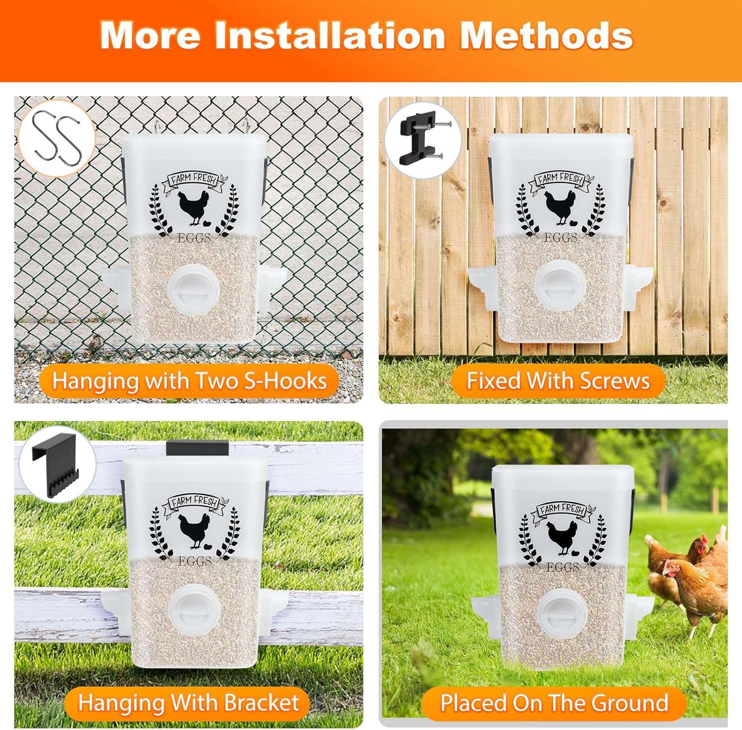 Mantén la salud de tu rebaño con un sistema limpio. La cubierta independiente protege el alimento de la lluvia y las hojas. Todo el sistema es desmontable en 30 segundos, sin rincones ocultos donde se acumule suciedad. Incluye 3 métodos de instalación: gancho en S, soportes a presión o fijación con tornillos, permitiéndote cambiarlo de lugar en menos de un minuto.