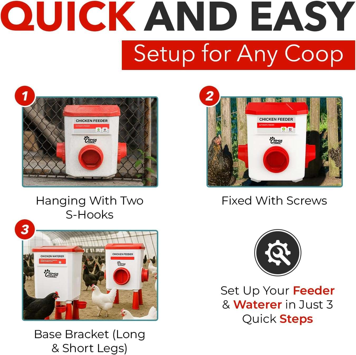 Este es el sistema de alimentación más versátil del mercado, diseñado para adaptarse a todas las etapas de vida de tus aves. Cada kit incluye un juego completo de patas (cortas y largas) y un gancho de suspensión. Empieza usando las patas cortas para pollitos, cámbialas por las largas para aves en crecimiento, o cuelga el equipo para gallinas adultas. Una sola inversión que dura toda la temporada.