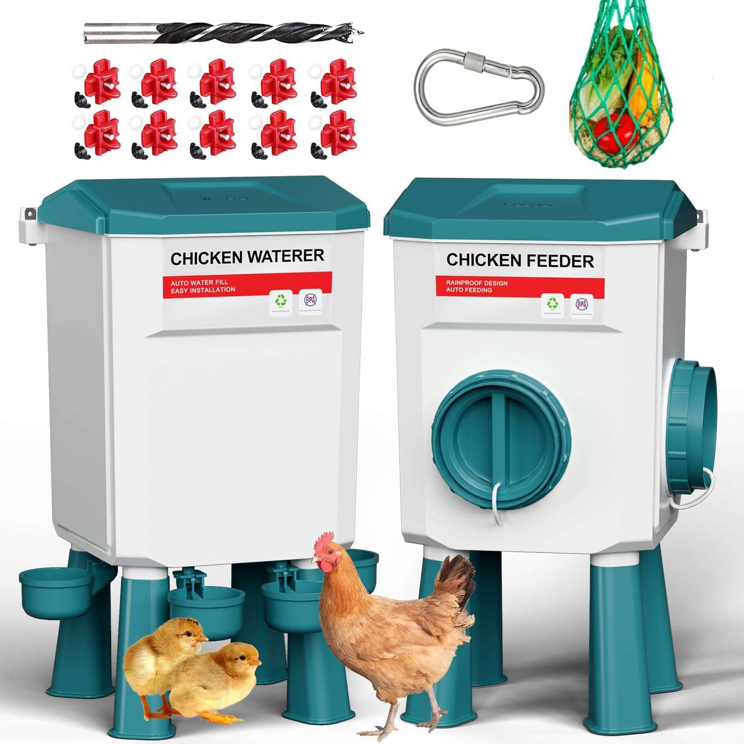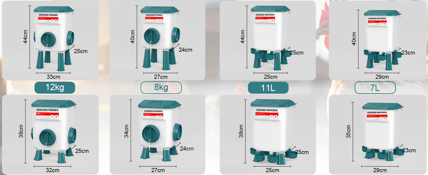 Simplifica la crianza con este sistema integral de alimentación. Disponible en dos tamaños optimizados para tu gallinero: el modelo de 8 Kg (perfecto para manejo fácil) y el modelo de alta autonomía de 12 Kg (para rebaños más grandes o dueños con poco tiempo). Elige la capacidad exacta para mantener a tus aves alimentadas e hidratadas por más días sin necesidad de recargas constantes.