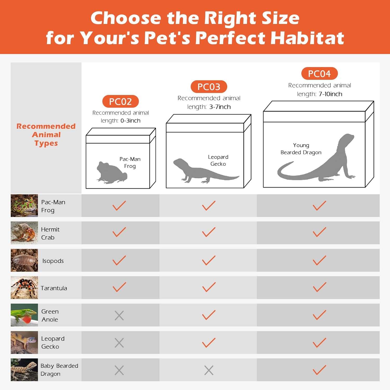 Amplia aplicación: este terrario ecológico de selva tropical es perfecto para una variedad de anfibios y reptiles, incluyendo lagartos, tortugas, camaleones, serpientes, ranas, arañas, tortugas, geckos, dragones barbudos, pitones de bola y más