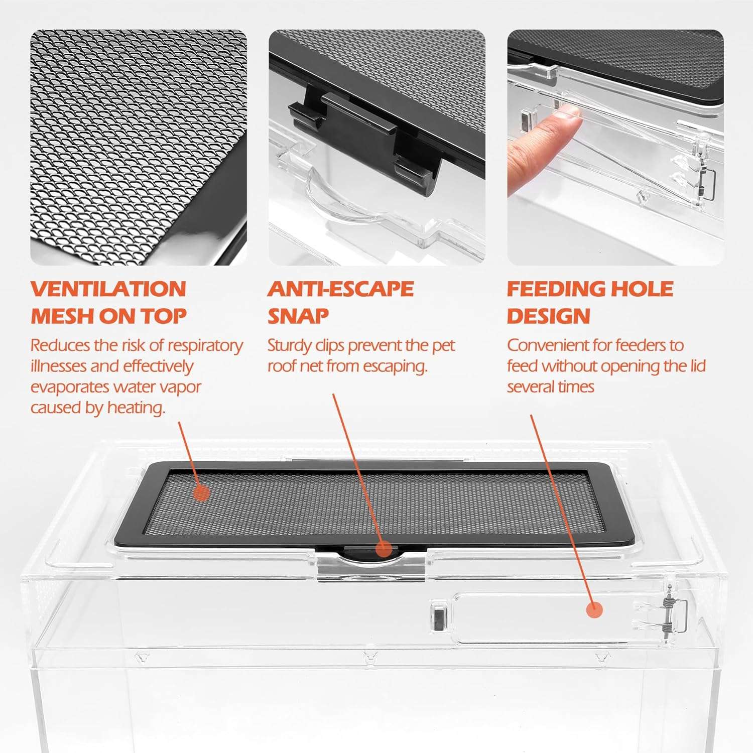 Resistente y duradero: este mini terrario compacto está hecho de materiales de policarbonato templado gruesos y duraderos, lo que garantiza la seguridad. Ofrece una vista de 360 grados del hábitat, con una parte superior de pantalla resistente para ventilación y penetración infrarroja UVB