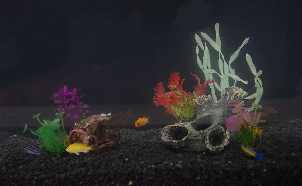 SEGURO: Hecho de material 100% seguro para todos los productos, sin olor especial, no afecta la calidad del agua en el tanque. Las plantas artificiales de plástico son lo suficientemente suaves como para que los peces se trasladen de un lado a otro, qué parque de atracciones para ellos.