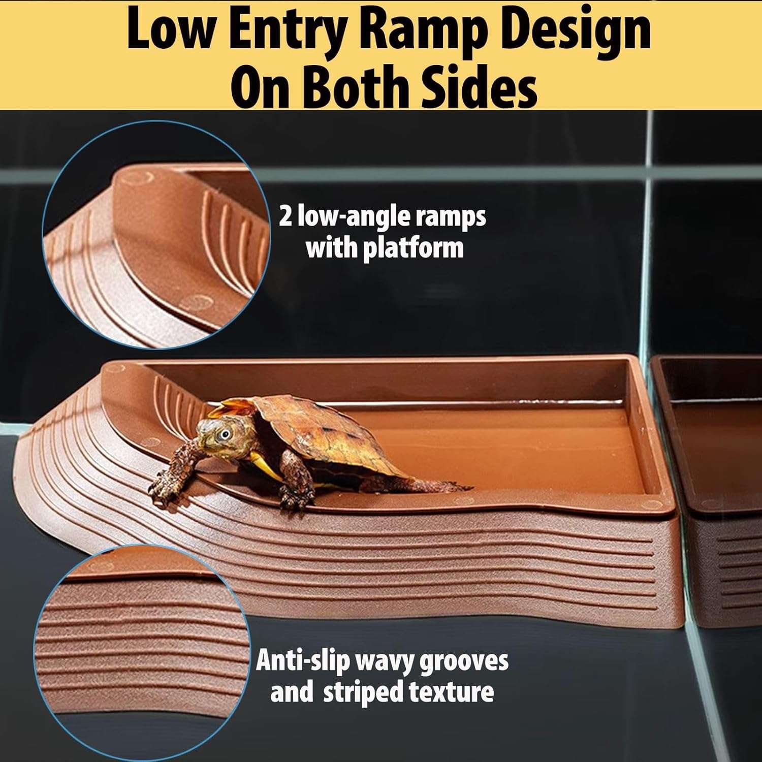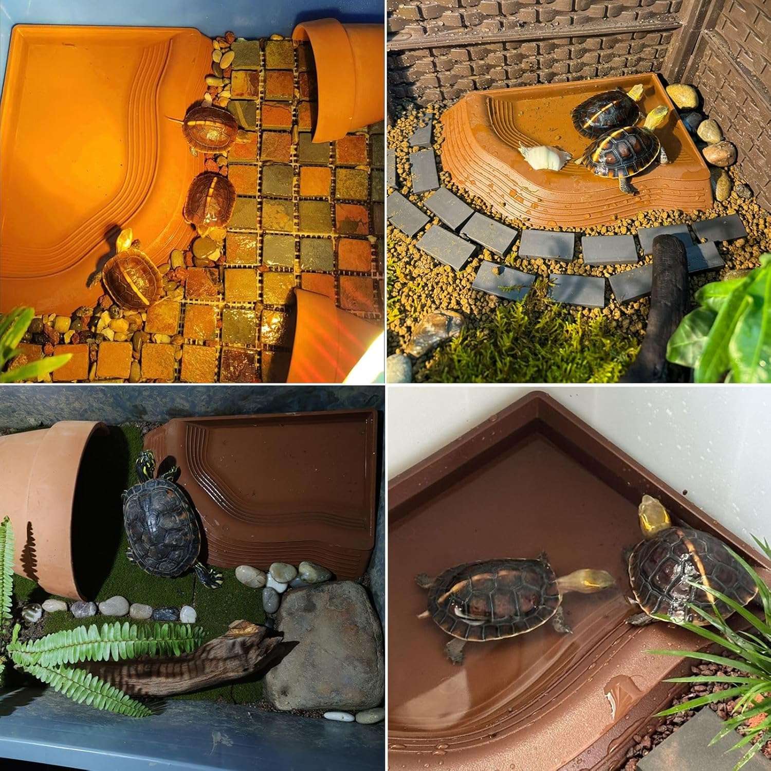 Rampa de doble cara y diseño de ángulo recto: la entrada y salida de la piscina de tortugas cuentan con una rampa baja antideslizante, lo que hace que sea más fácil para los reptiles subir y salir sin volcarse. Diseño de ángulo recto, que se adapta bien a la esquina, proporciona un espacio más hermoso y ordenado para mascotas.
