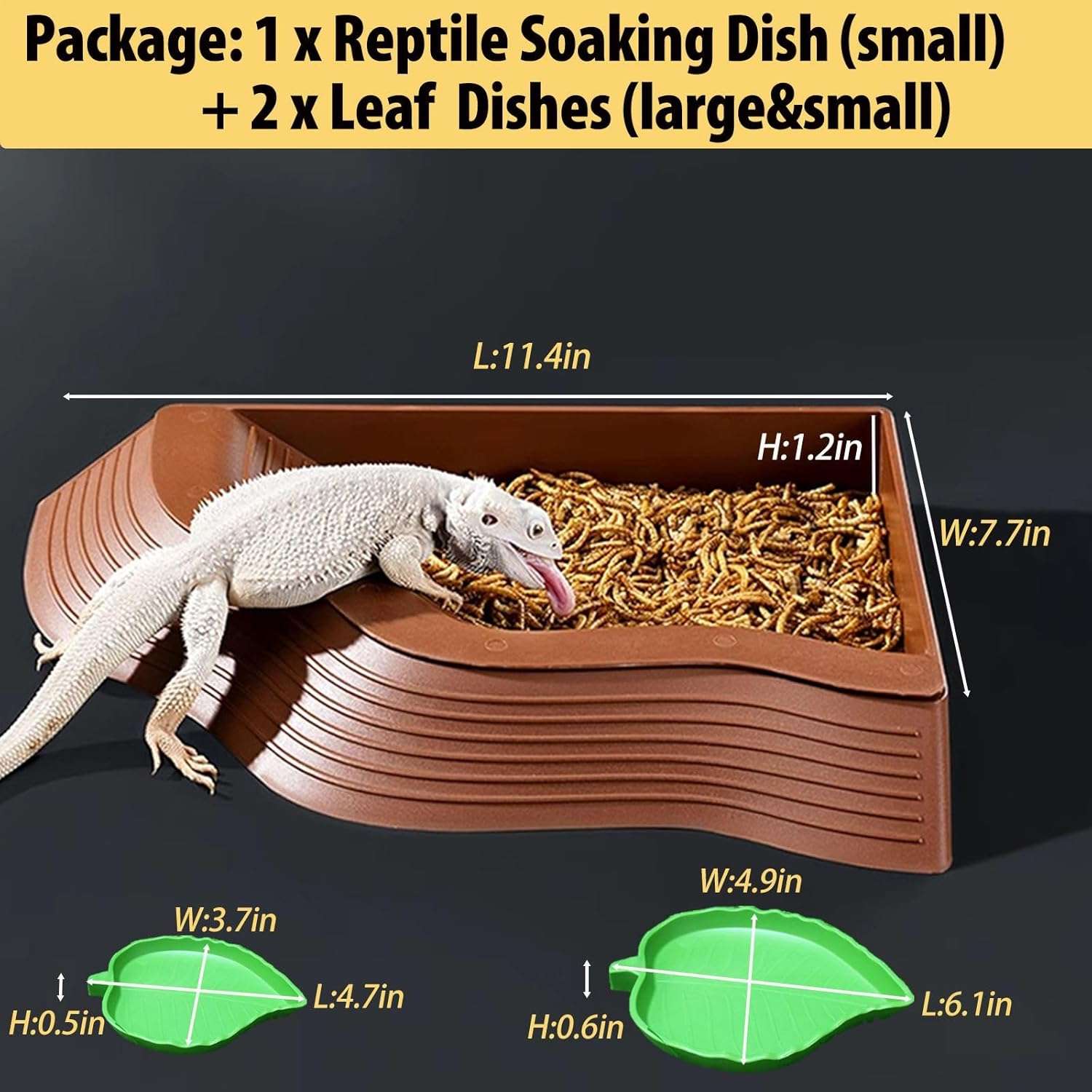 Paquete: 1 plato de remojo de tortuga (grande) + 2 platos de agua y comida de tortuga en forma de hoja (pequeño + grande). Todos están diseñados para verse y sentirse de manera similar a la roca real o la hoja verde, hacen que se mezclen perfectamente en el hábitat de los reptiles y crean un ambiente cálido natural para tu reptil
