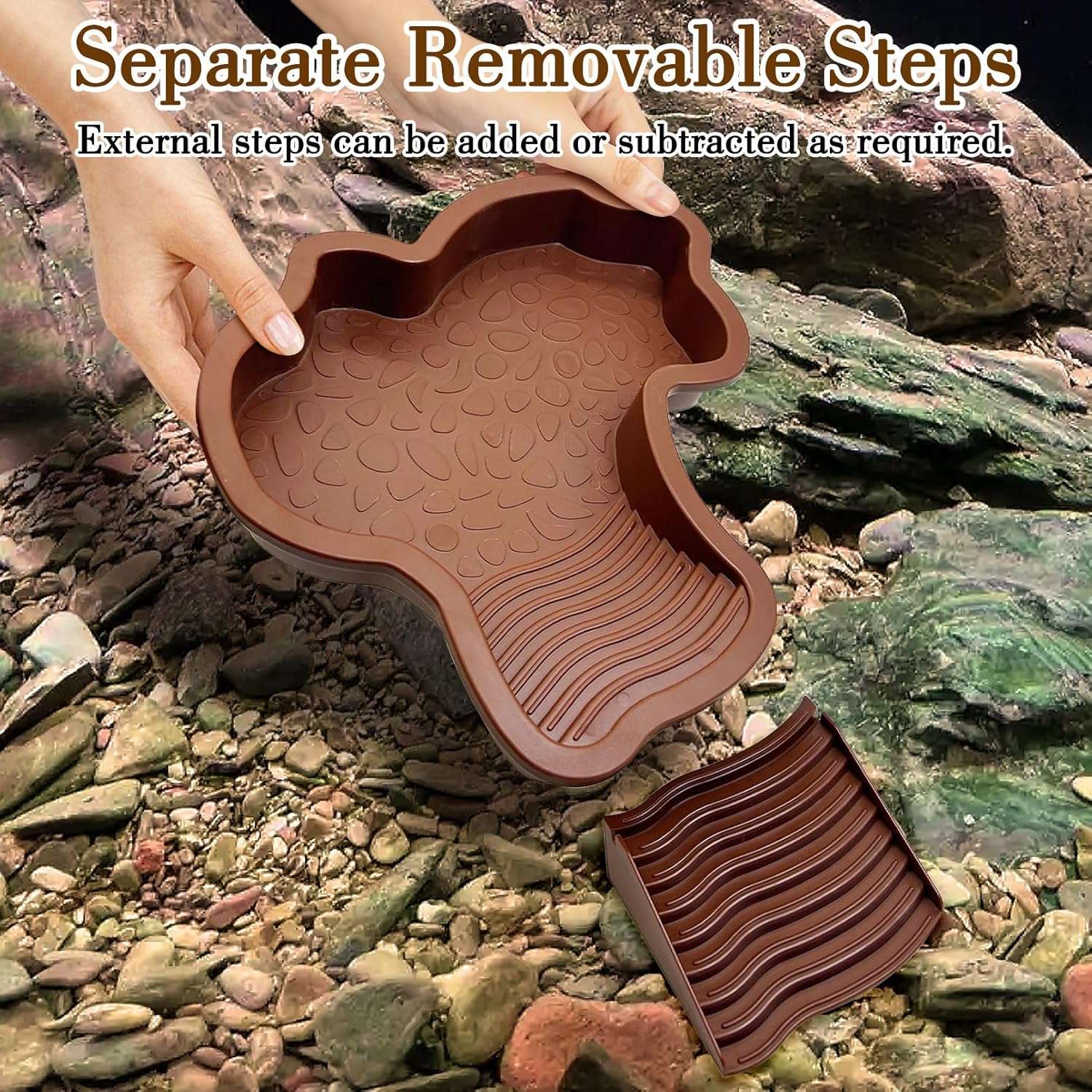 Diseño de escalón de doble cara: la piscina de agua de tortuga Apatal Box es conveniente para que tu reptil suba, baje y entre y salga. Los escaladores externos separados se pueden desmontar libremente. El cuenco de agua para reptiles para bañarse es perfecto para que los reptiles hagan ejercicio y jueguen