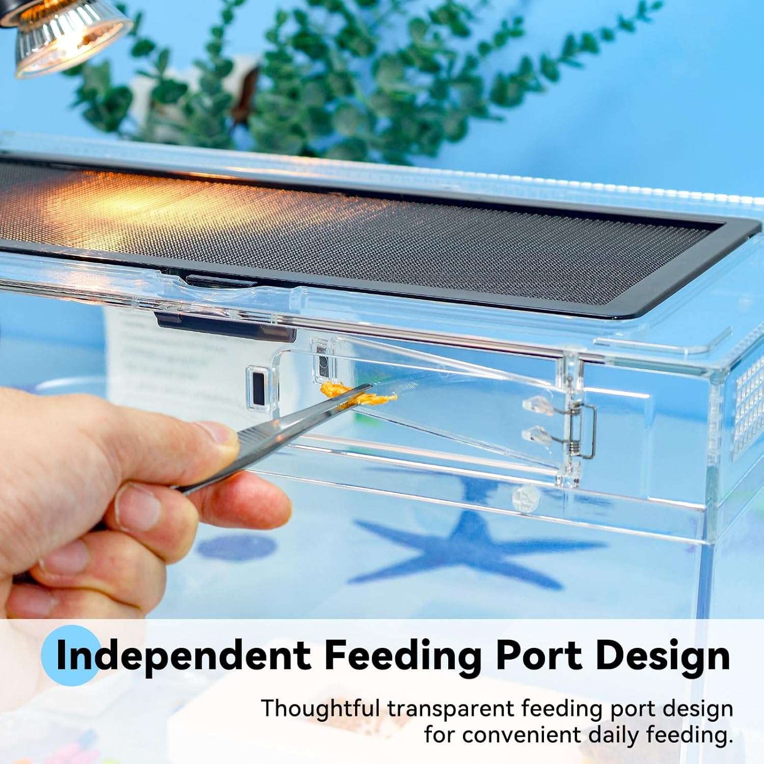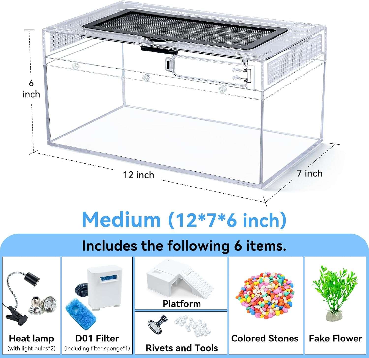 Experiencia de visualización de alta definición: el tanque de tortuga, fabricado con material de policarbonato inastillable, cuenta con un recinto transparente que es a la vez duradero y ofrece una excelente visibilidad, lo que te permite apreciar completamente el encanto de tu mascota en su acuario de tortugas.