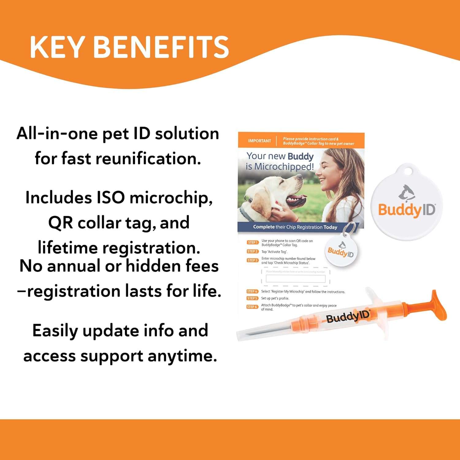 Uso Profesional y Domestico Disenado para brindar confianza en todos los niveles Este sistema dual de identificacion es ideal tanto para el hogar como para ambientes de uso intensivo Es comunmente utilizado por criadores profesionales refugios de rescate clinicas veterinarias e instalaciones de aseo siendo el metodo mas efectivo para proteger a los animales de compania.