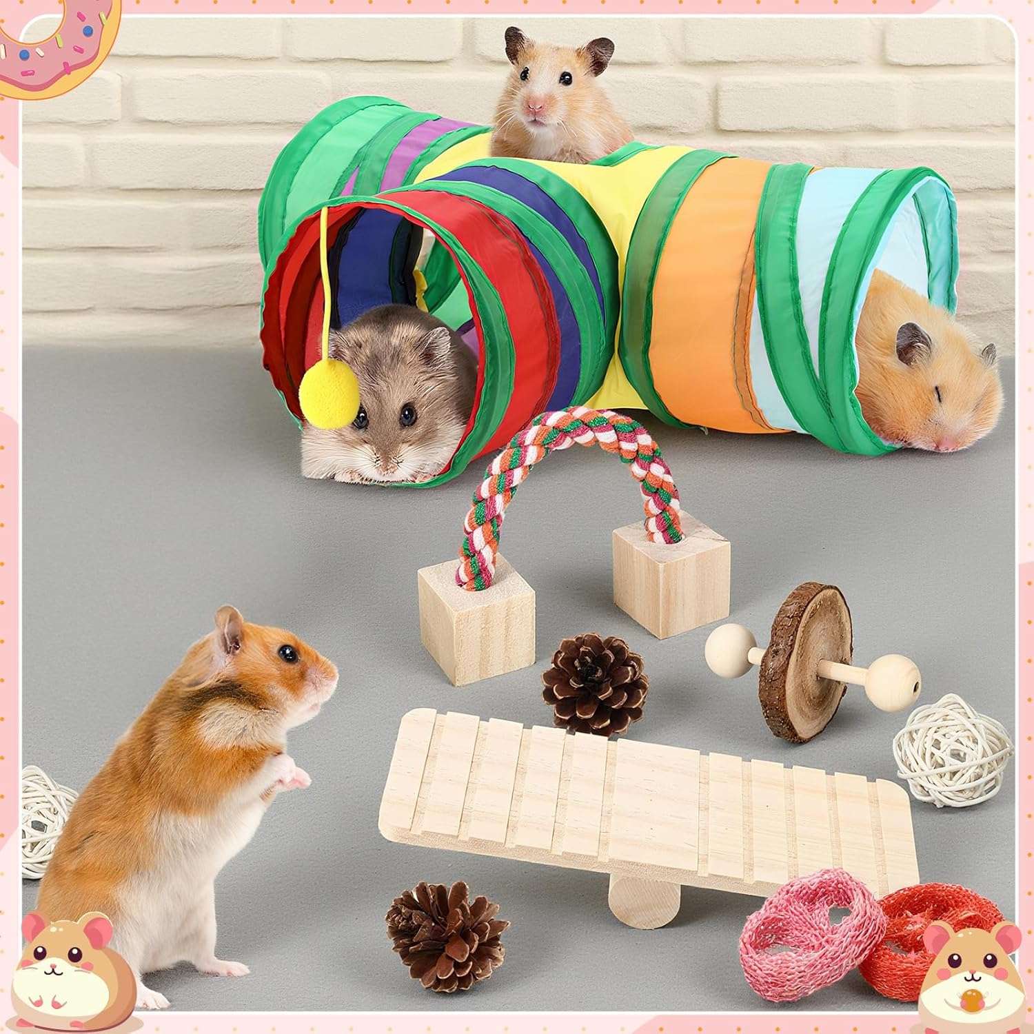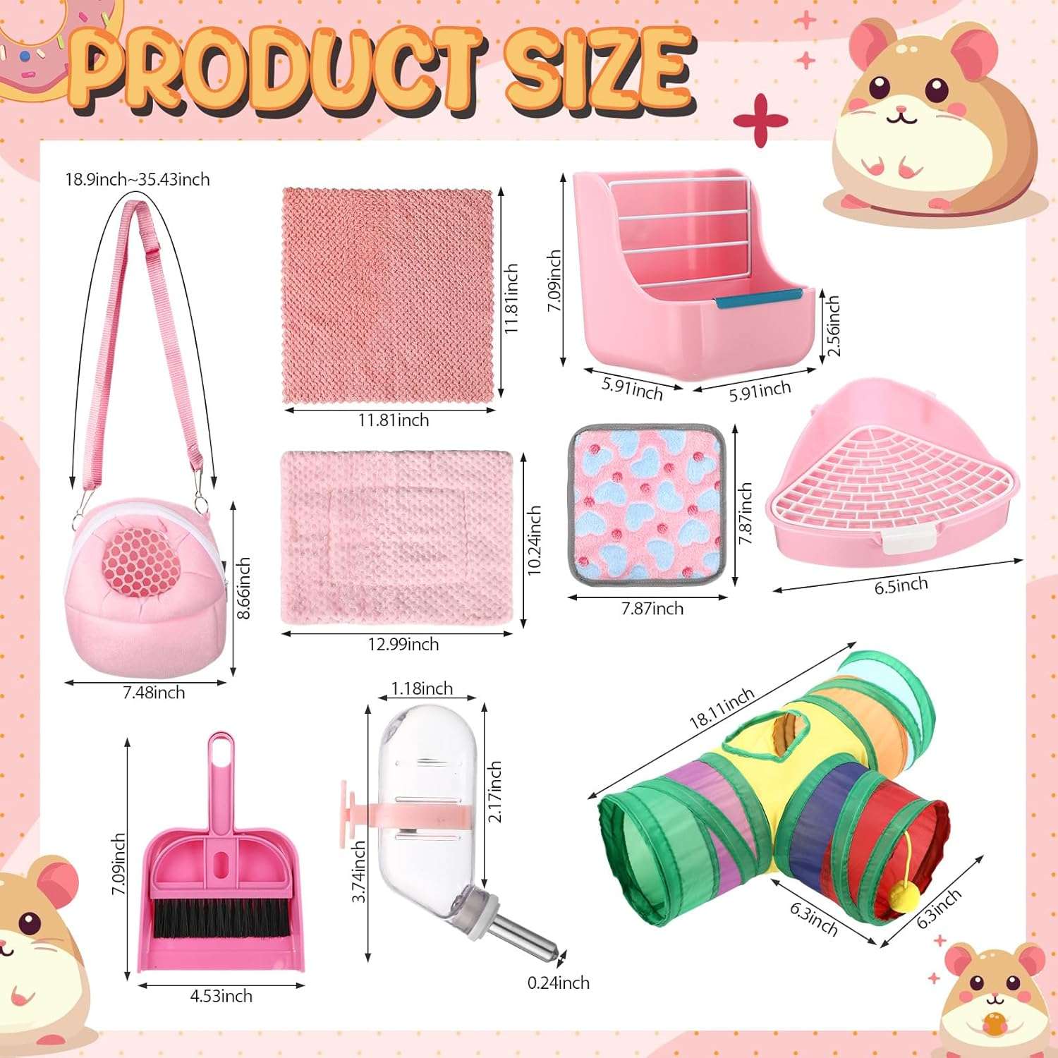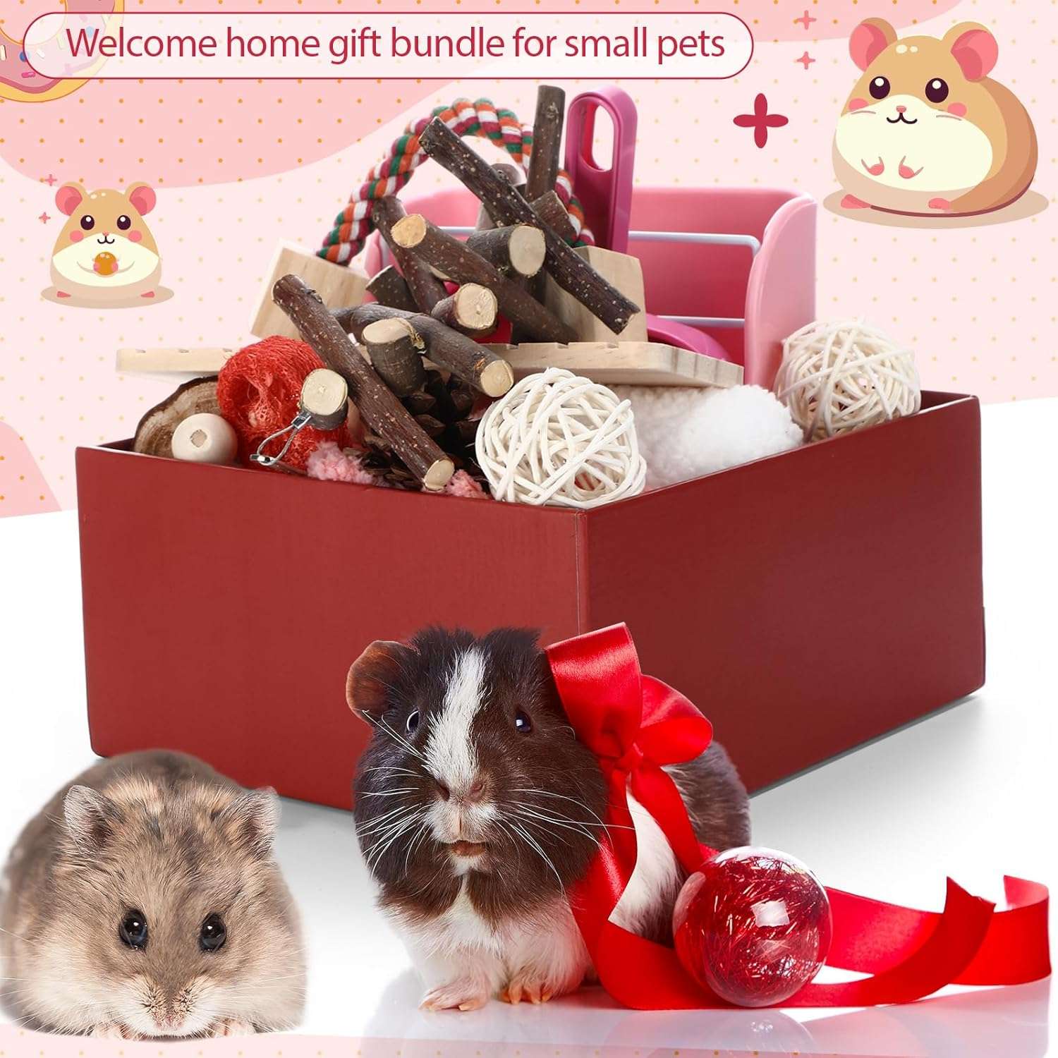 Juego de hámster: recibirás un juego de hámster de 20 piezas que incluye una manta, alfombra, toalla, inodoro pequeño, cuenco de alimentación, juego de limpieza, regada, hamaca pequeña para mascotas, bolsa pequeña para salir, canal de juego y un juego de 10 piezas de juguetes pequeños para mascotas, que es muy adecuado para hámsters, hámsters y otras mascotas pequeñas