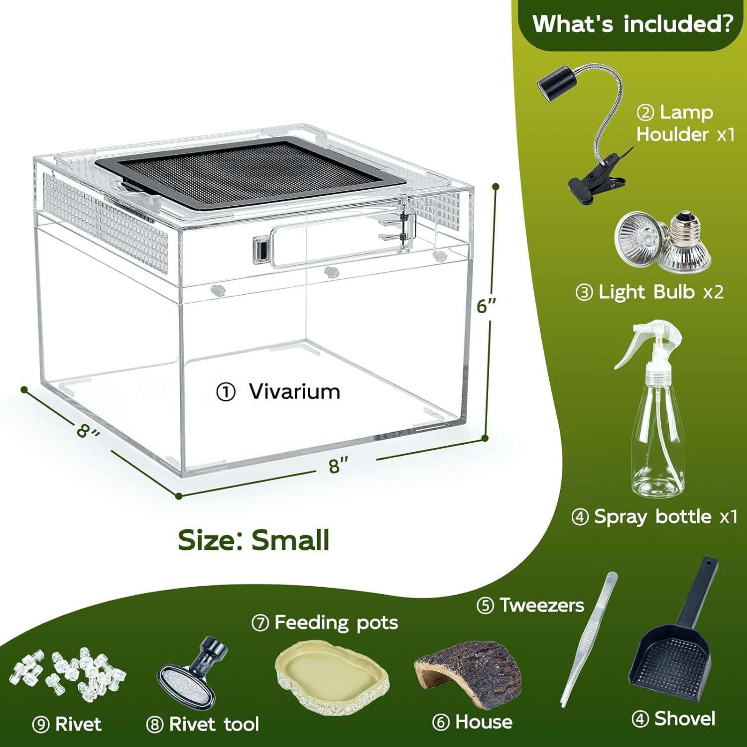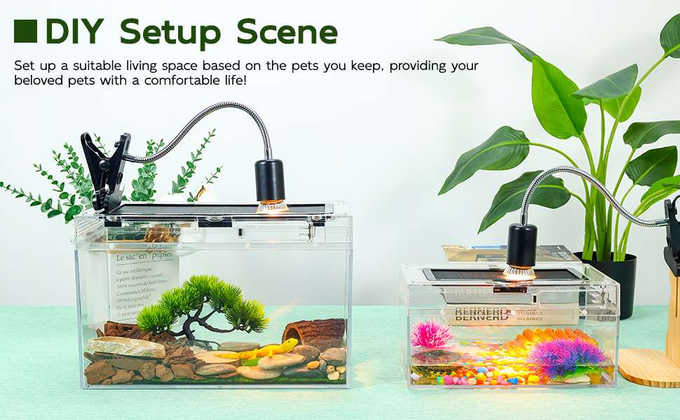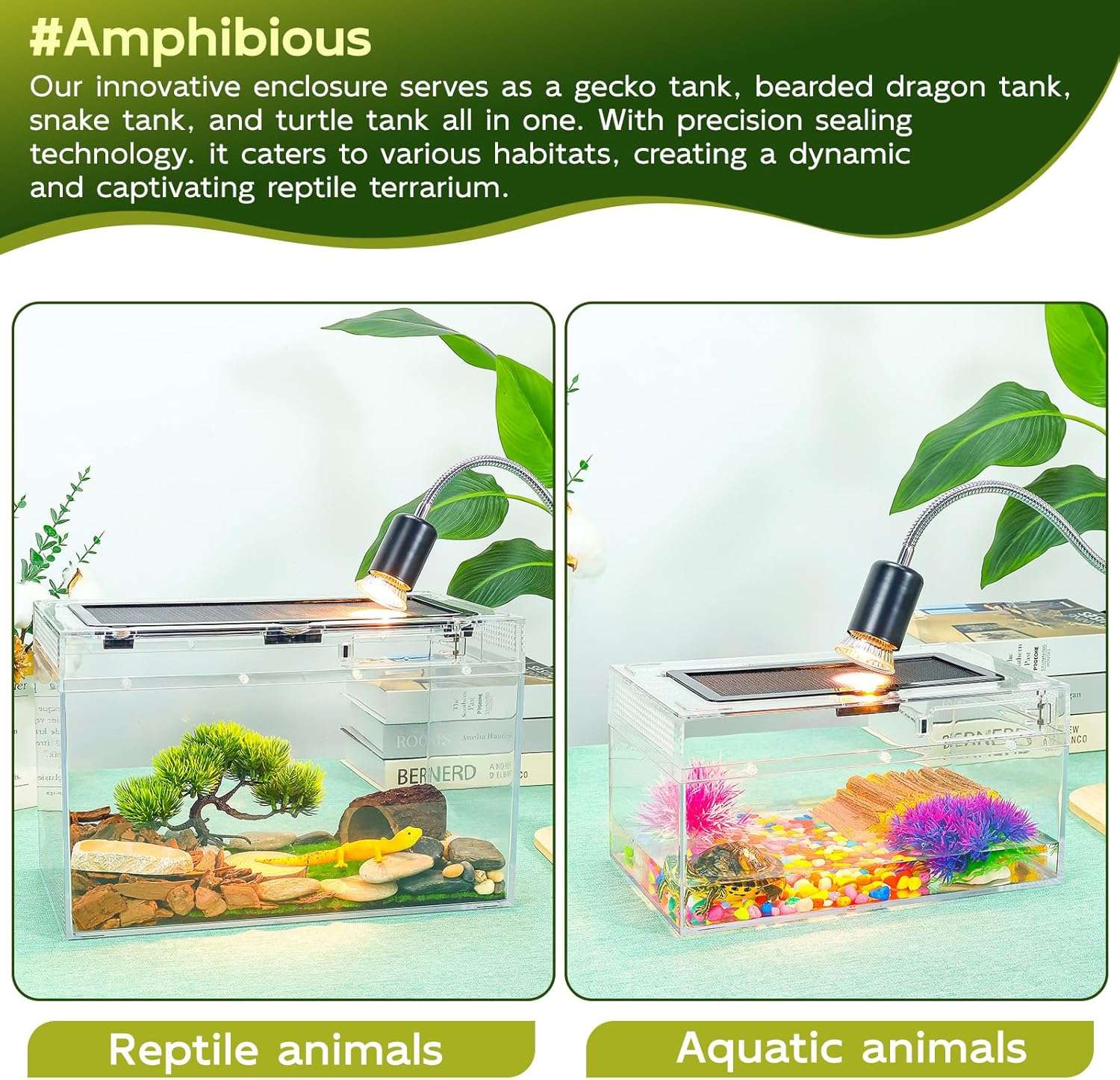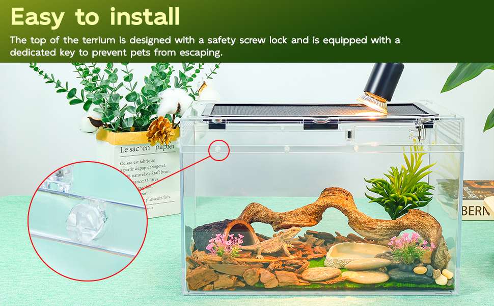 Versátil hábitat de reptiles: nuestro innovador recinto sirve como un tanque de gecko, tanque de dragón barbudo, tanque de serpiente y tanque de tortuga, todo en uno. Con tecnología de sellado de precisión, abastece a varios hábitats, creando un terrario de reptiles dinámico y cautivador.